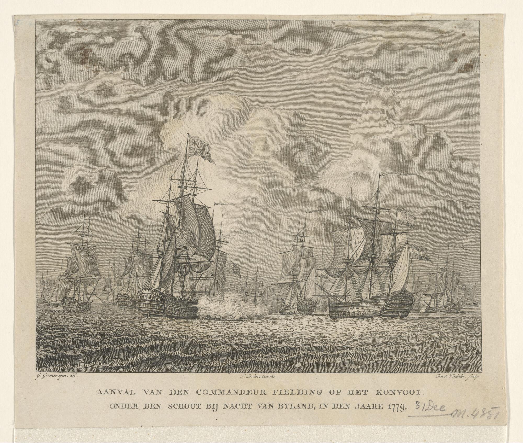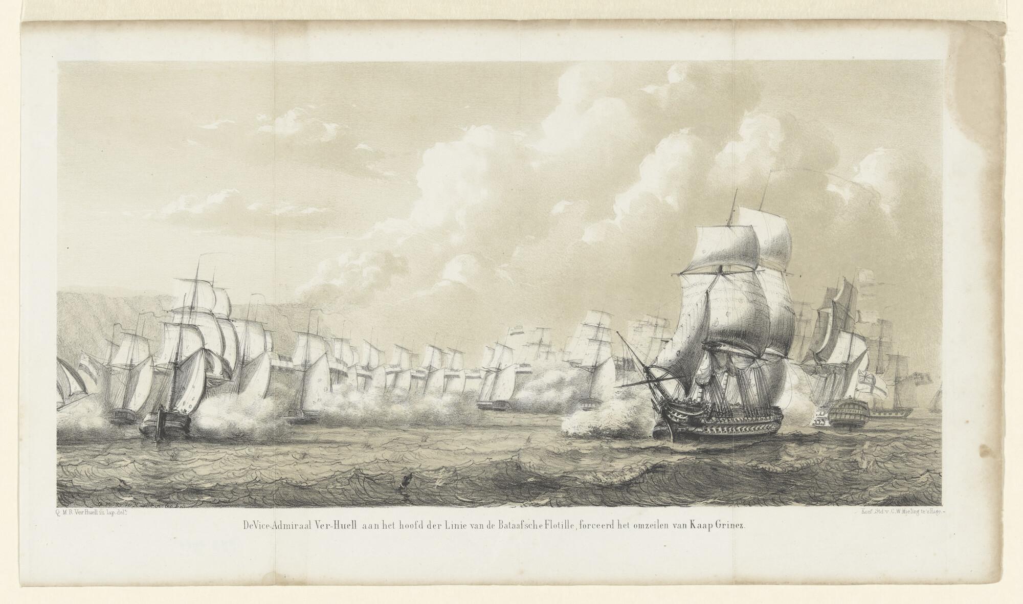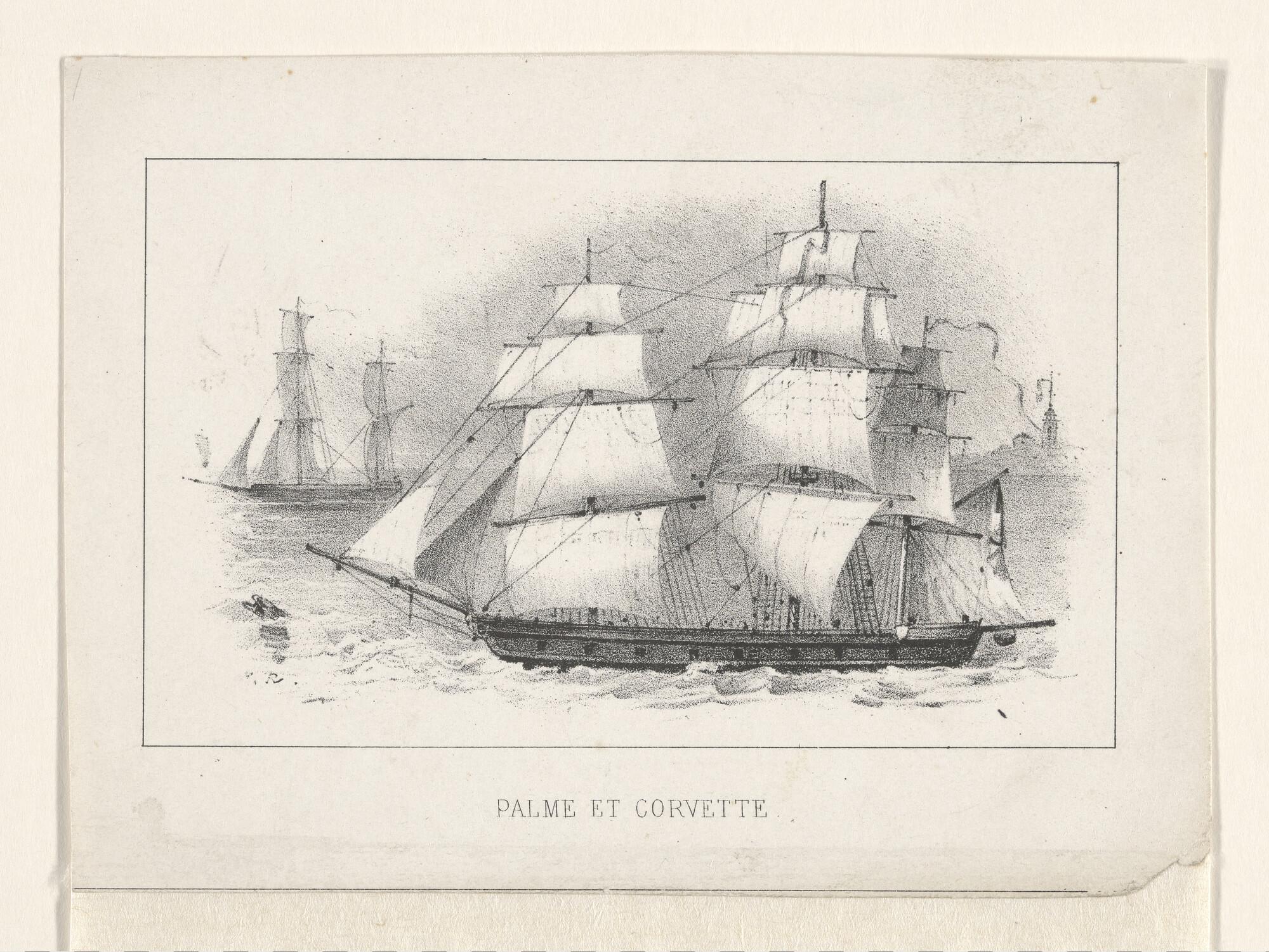 Prent nr 3 uit een serie van 8: een oorlogsfregat en...