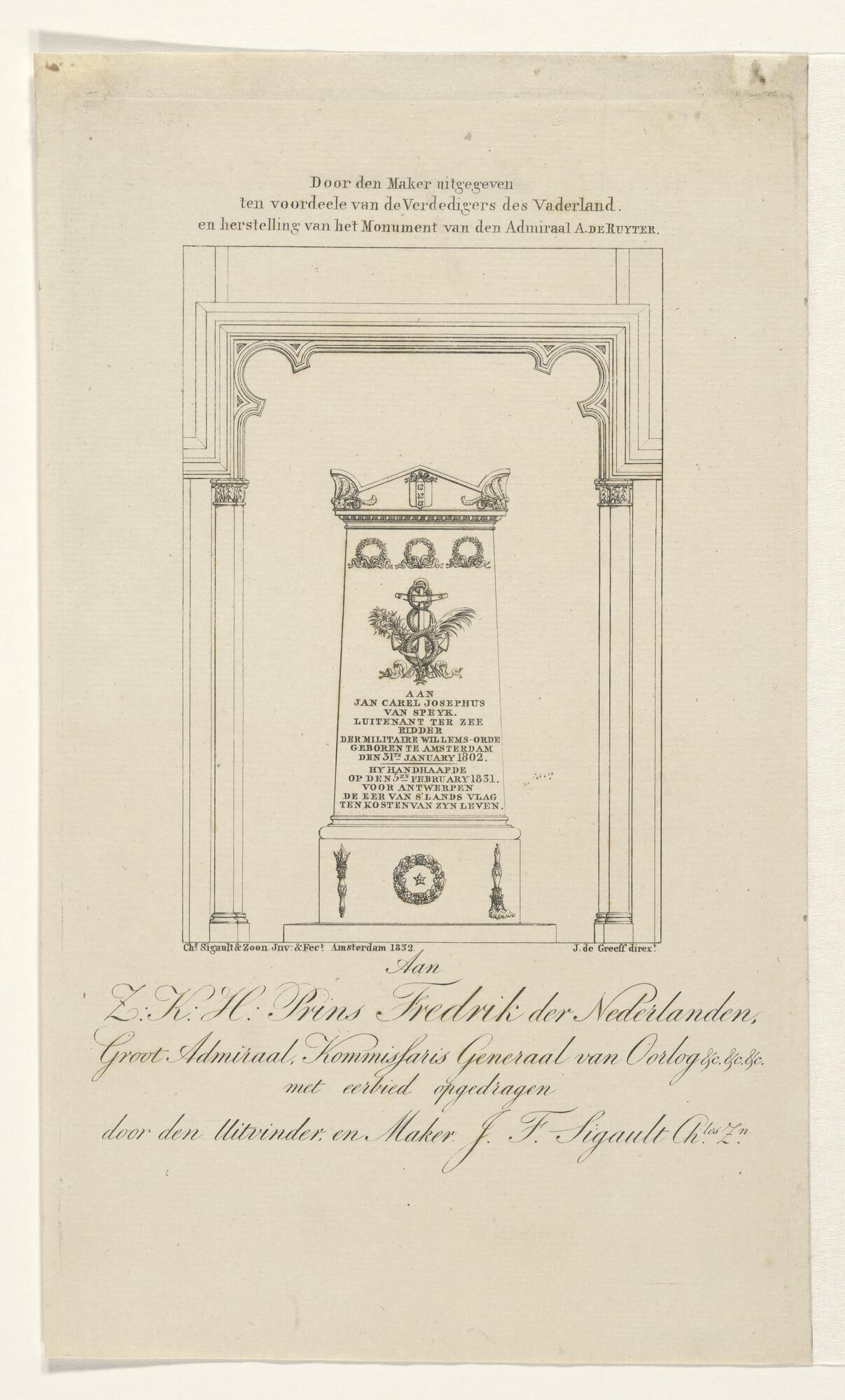 Graftombe, opgericht voor Van Speyk in de Nieuwe Ker...