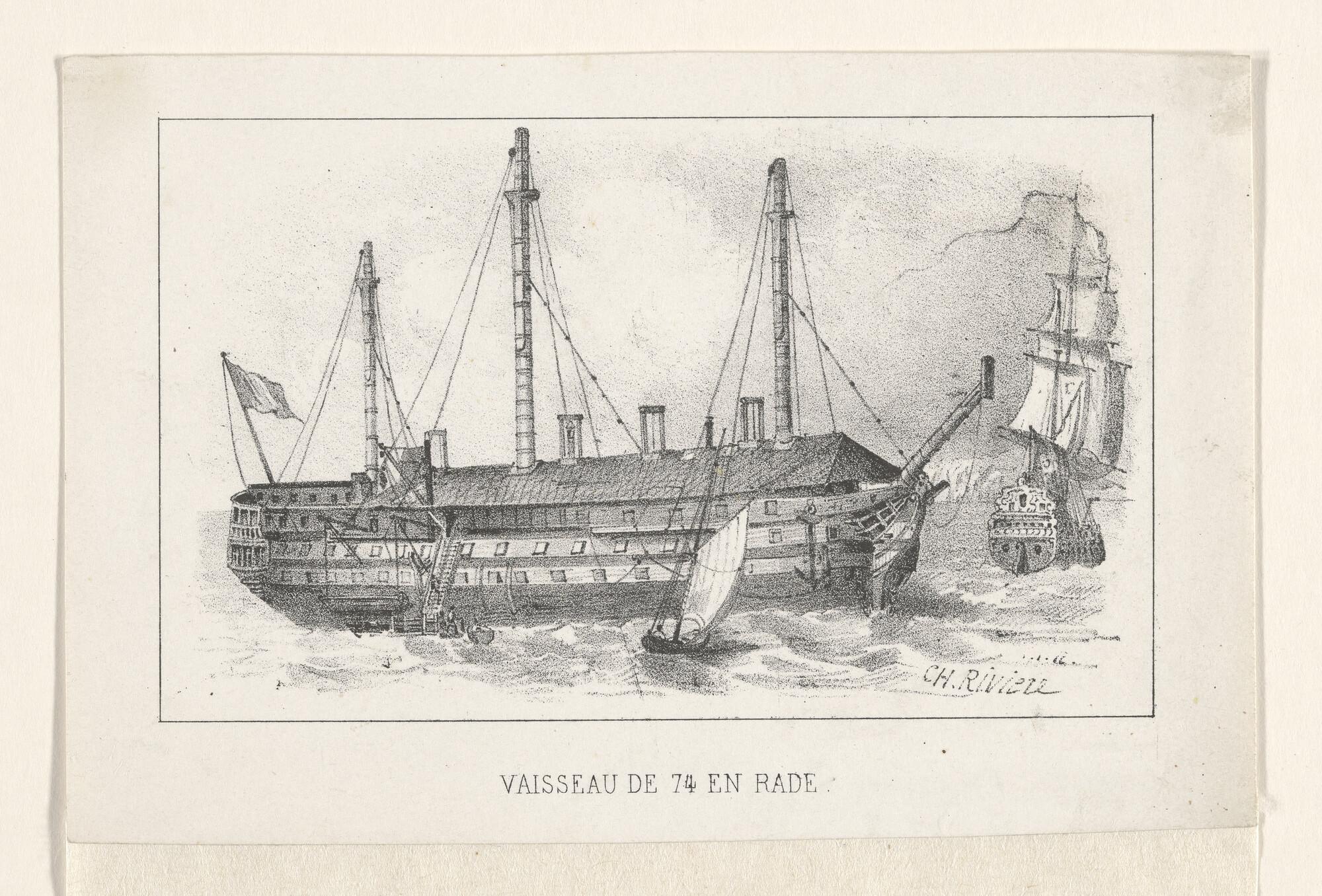 Prent nr 1 uit een serie van 8: een schip van 74 stu...