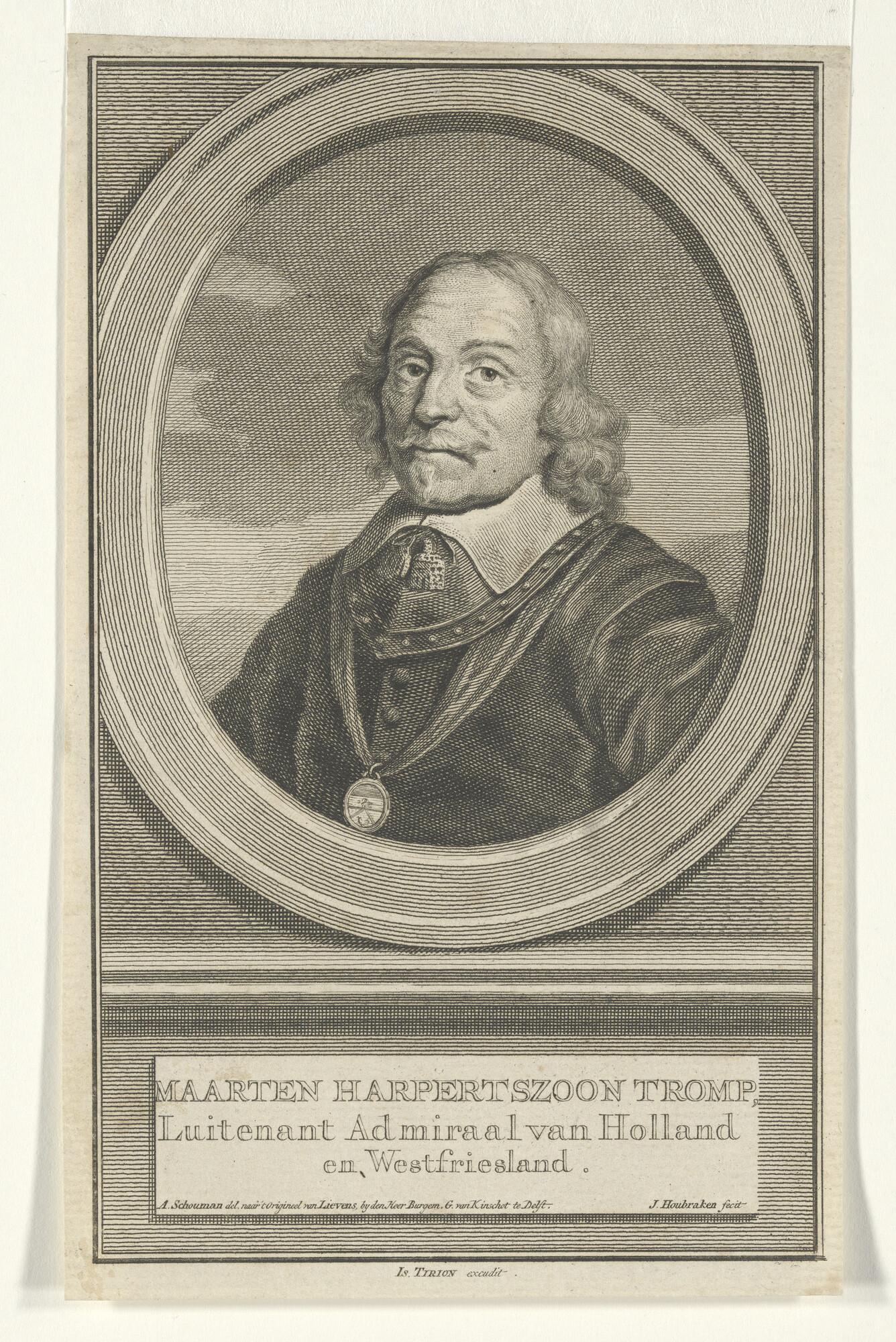 Portret van Maarten Harpertsz Tromp in ovalen lijst ...