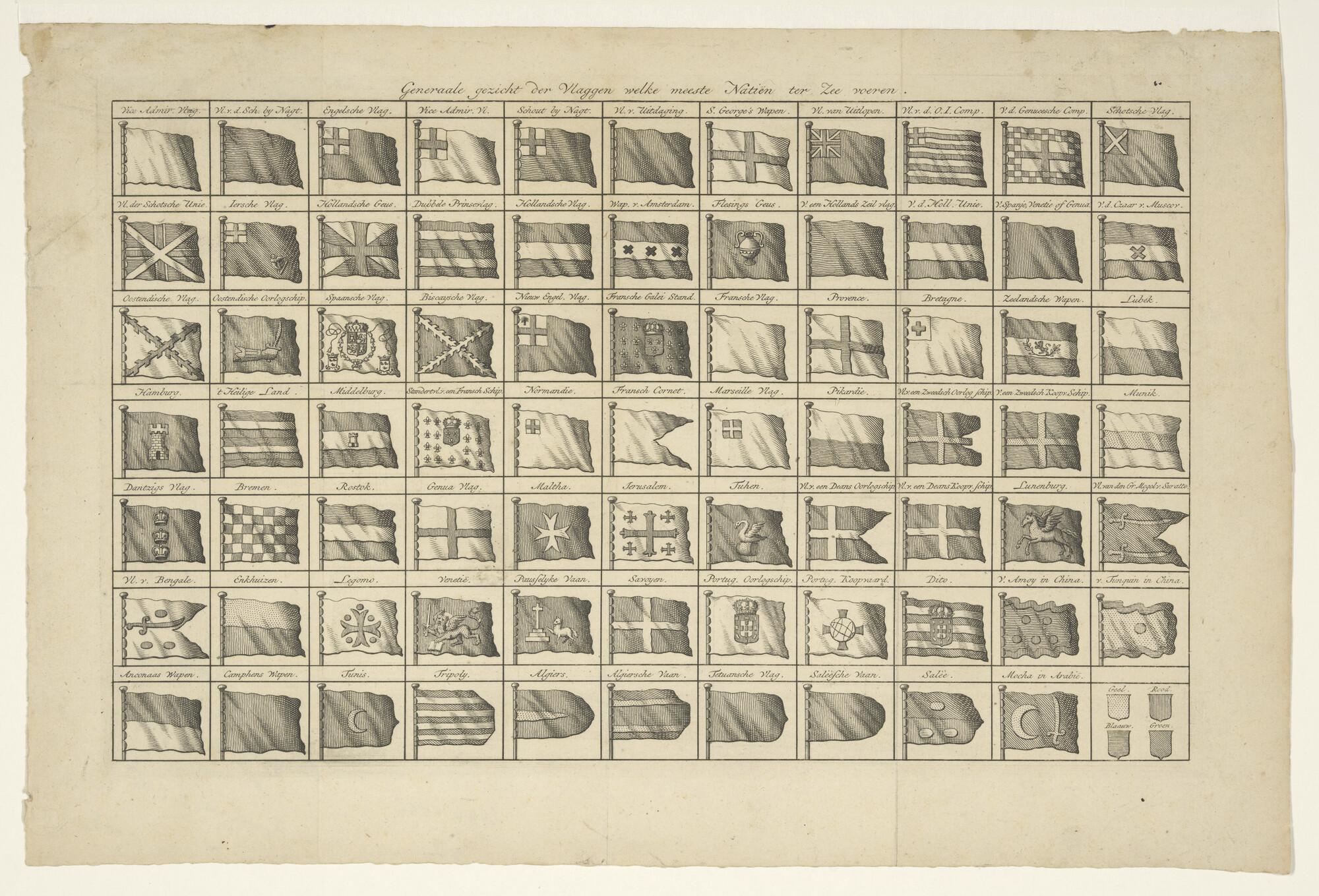 'Generaale gezicht der Vlaggen....' Vlaggenkaart met...