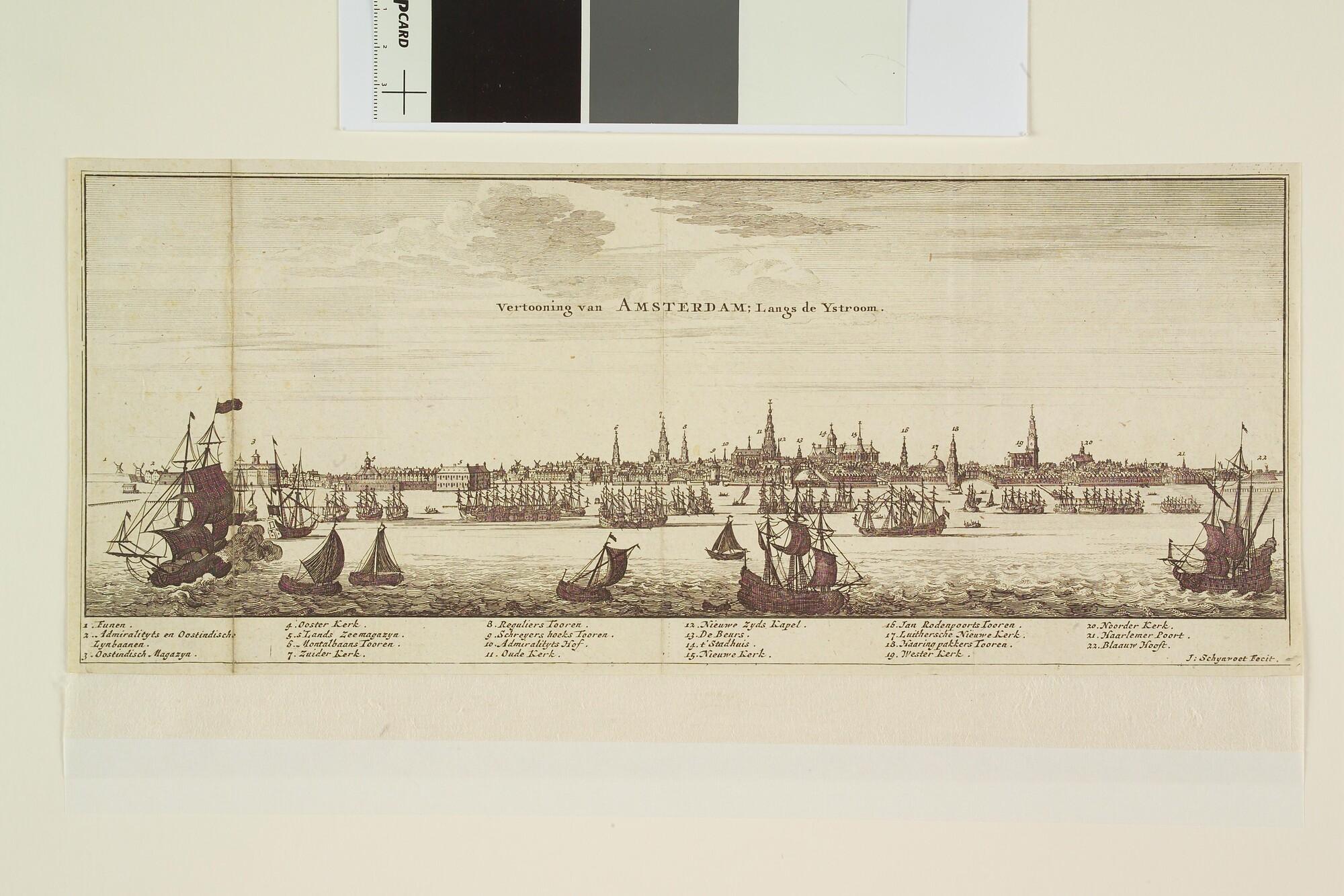 'Amstelaedamum.' Gezicht op Amsterdam over het IJ, v...