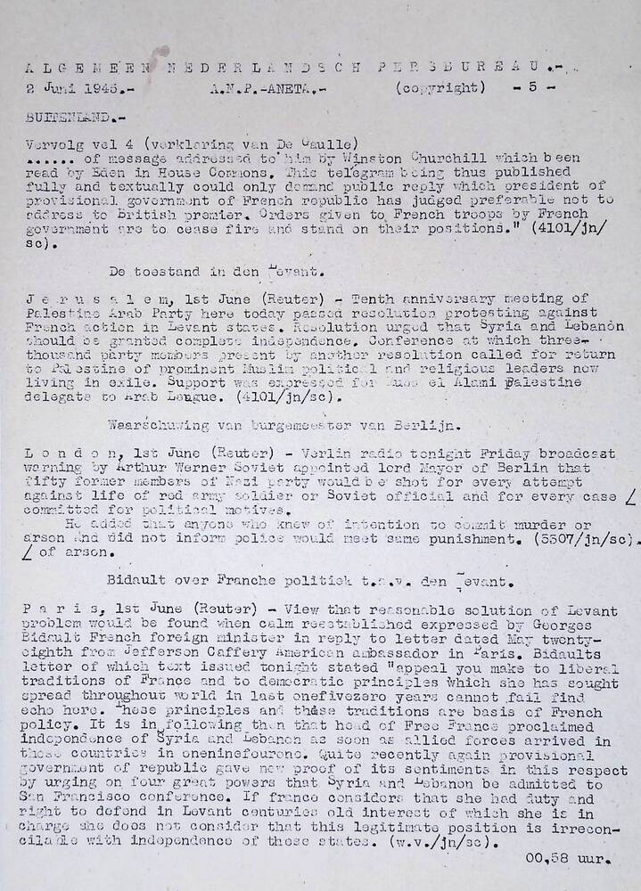 Algemeen Nederlandsch Persbureau, mededelingen, 2 ju...