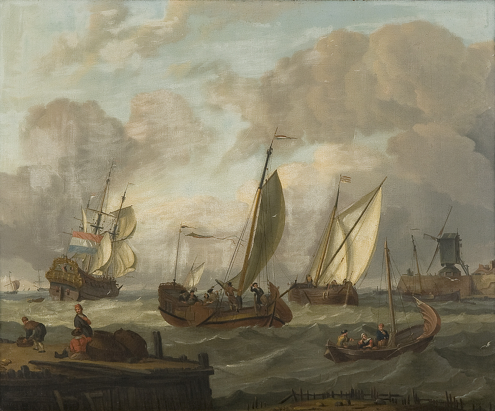 Schepen op een woelige zee voor de kust
