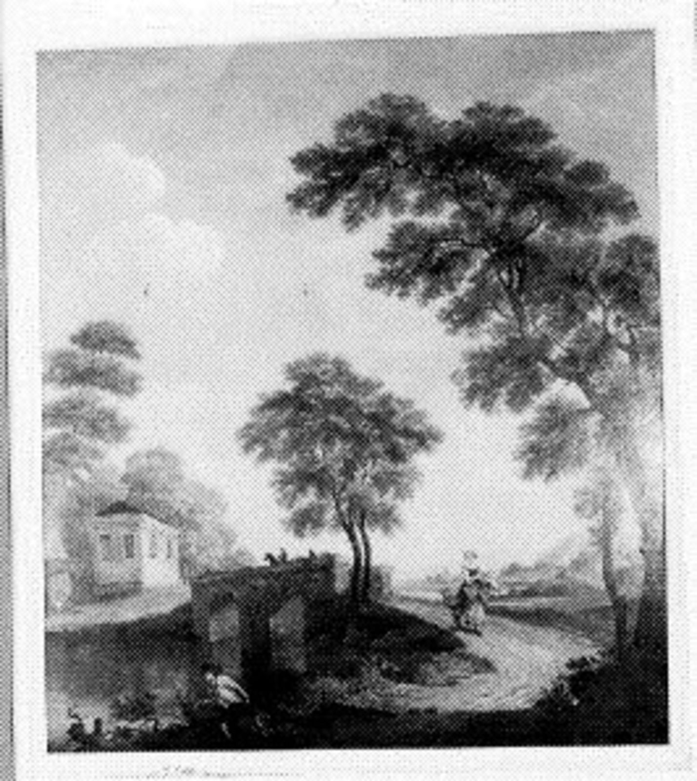 Landschap met stenen brug