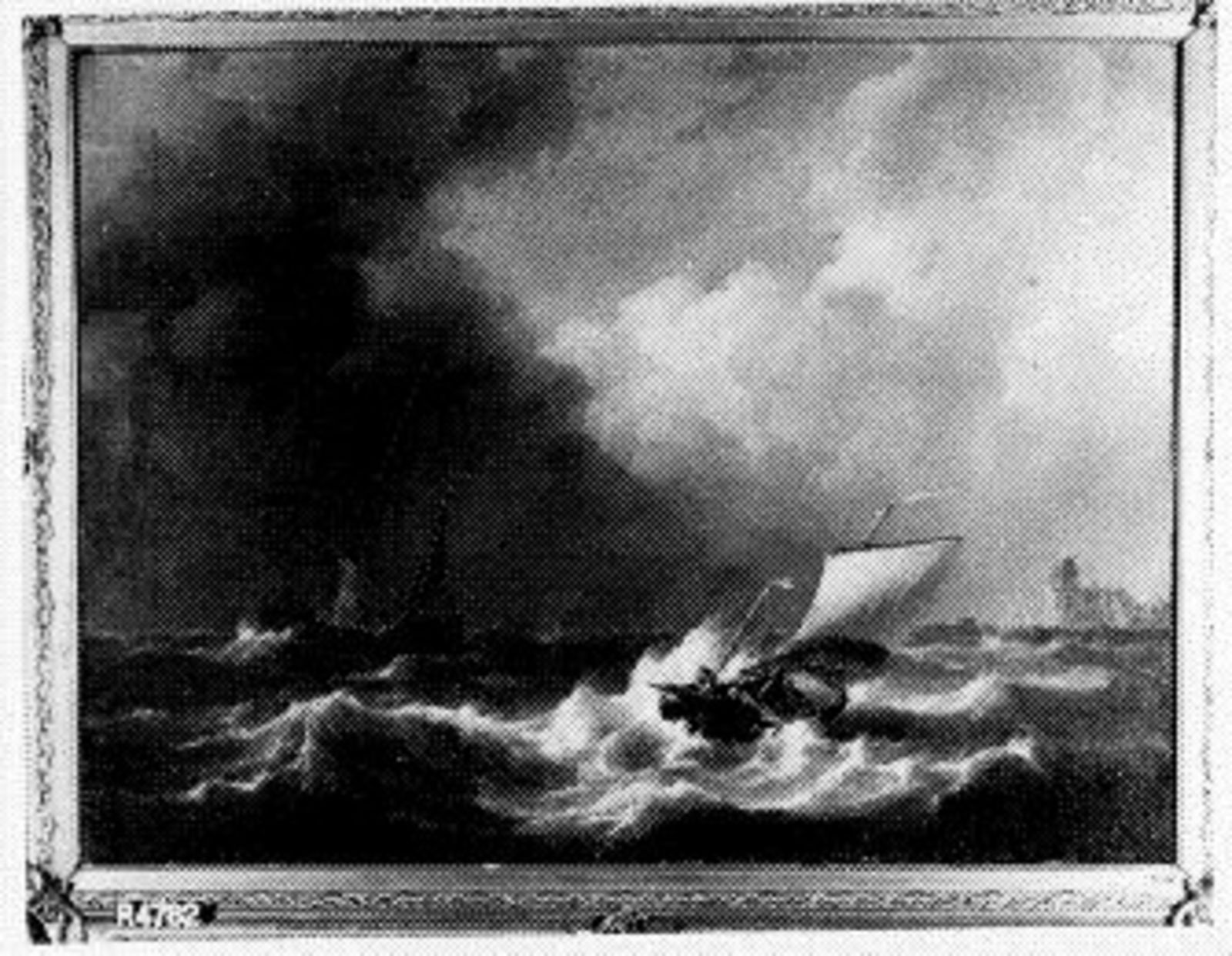 Een driemaster lijdt schipbreuk op een ruwe zee