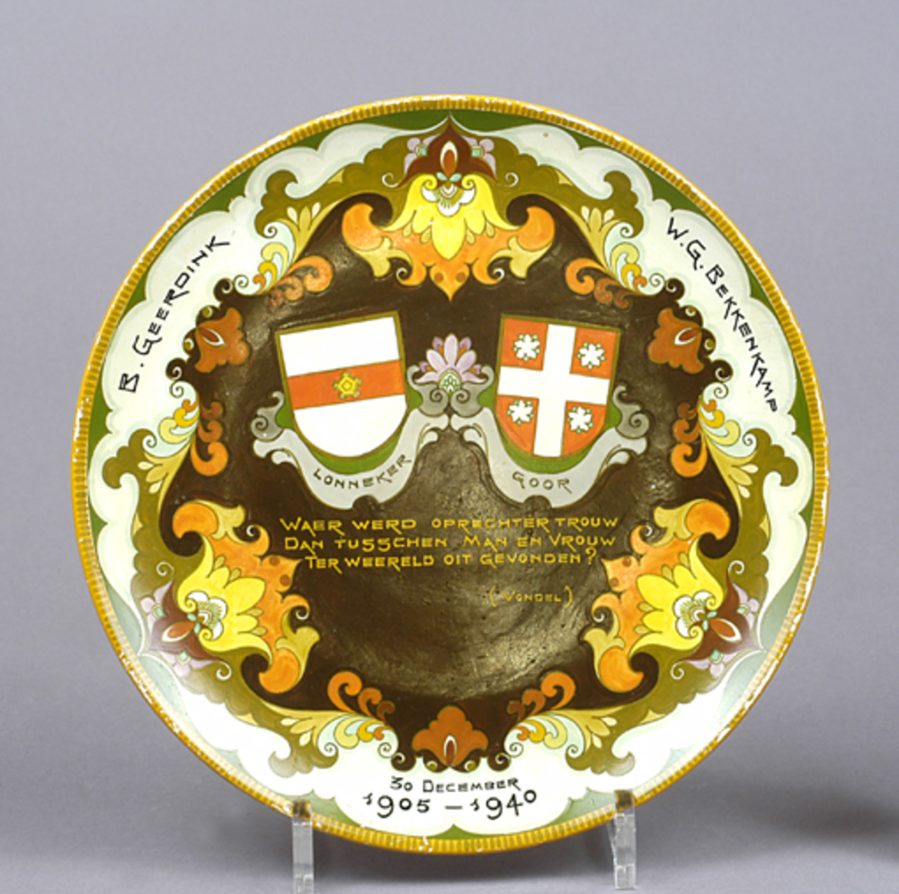 wandbord van keramiek t.g.v. 35-jarig huwelijk B. Ge...