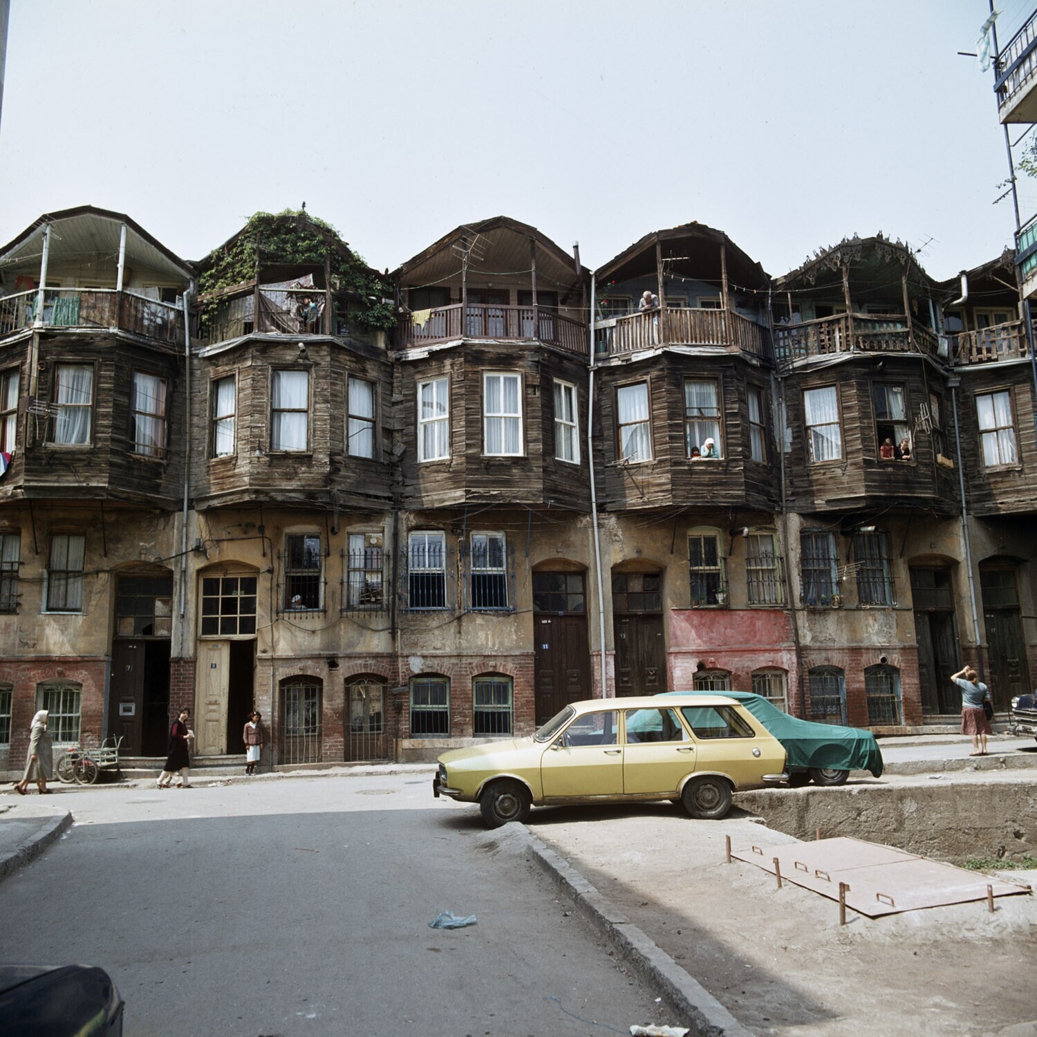 Istanbul, oude houten woningen op een rij Dit zijn d...