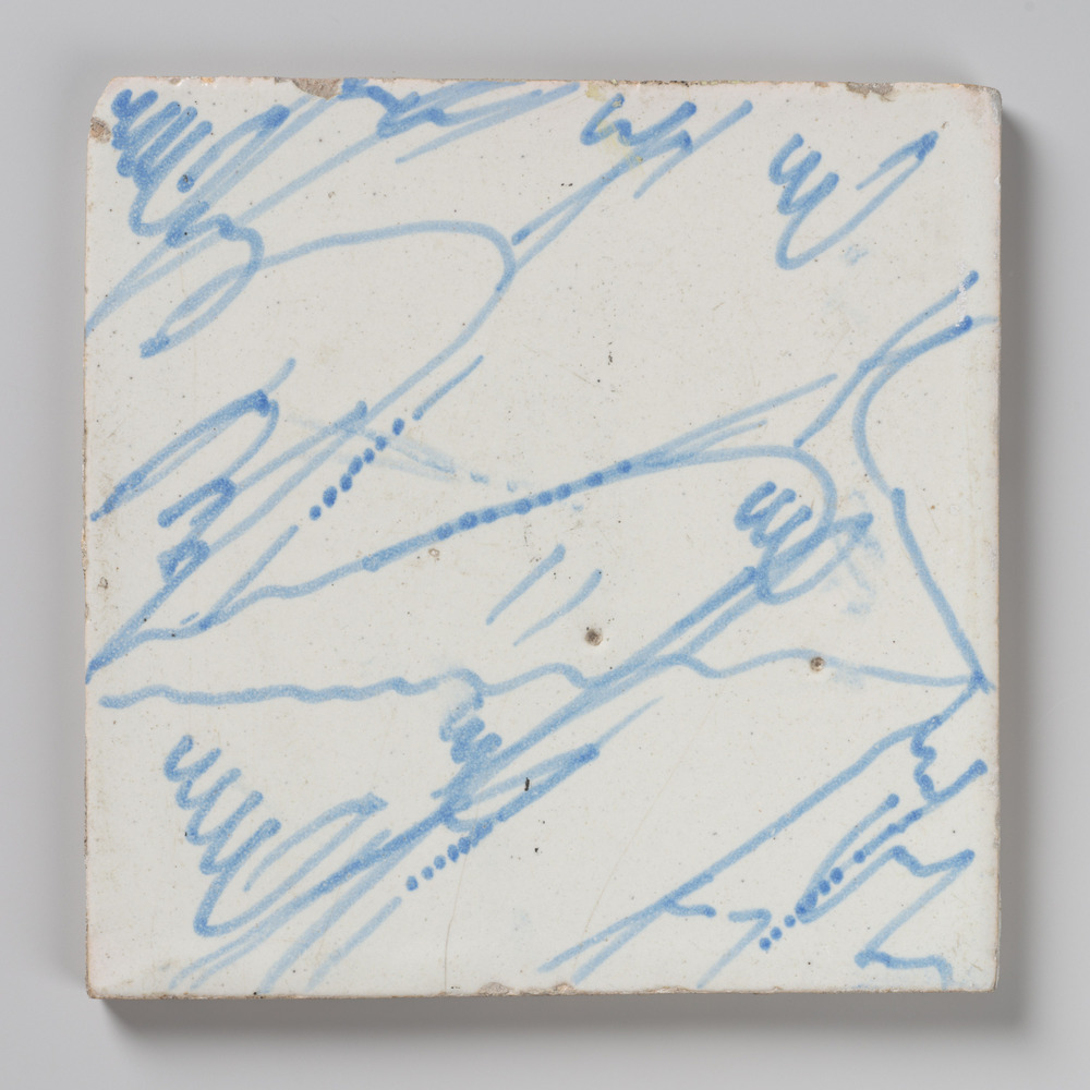 tegel van aardewerk met tinglazuur, voorstellende: h...