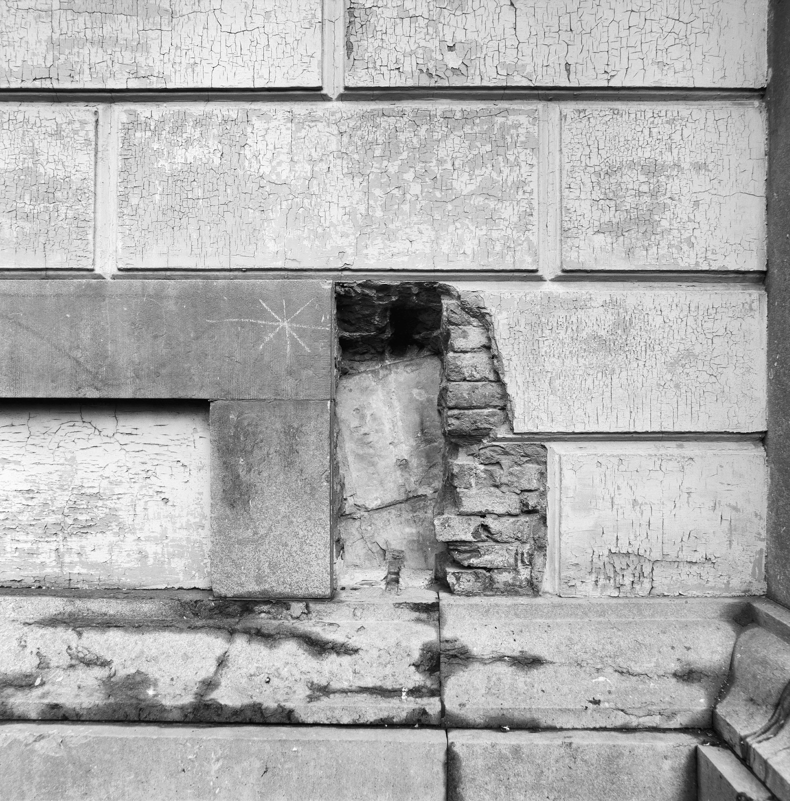 Voorgevel gesloten raam boven plint waarachter midde...