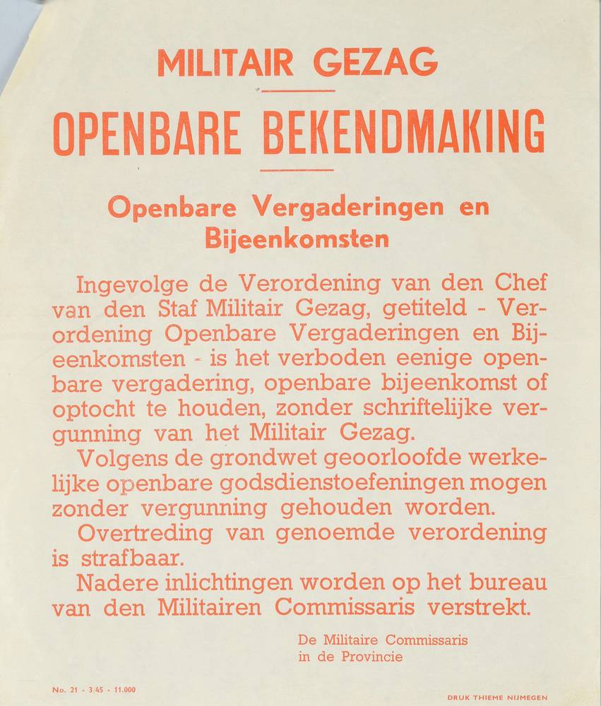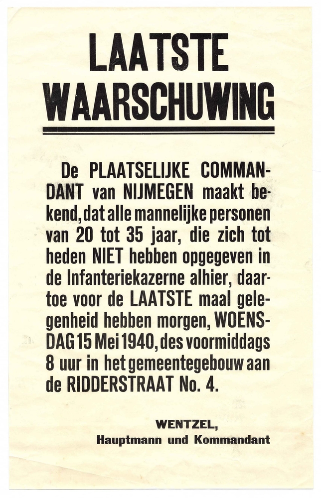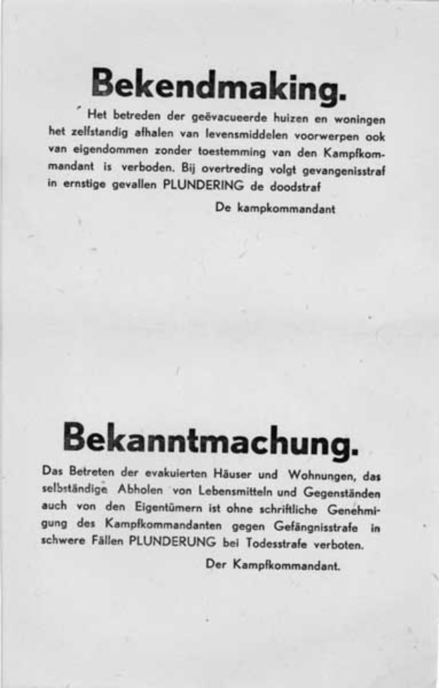 Affiche, uit de Tweede Wereldoorlog, met bekendmakin...