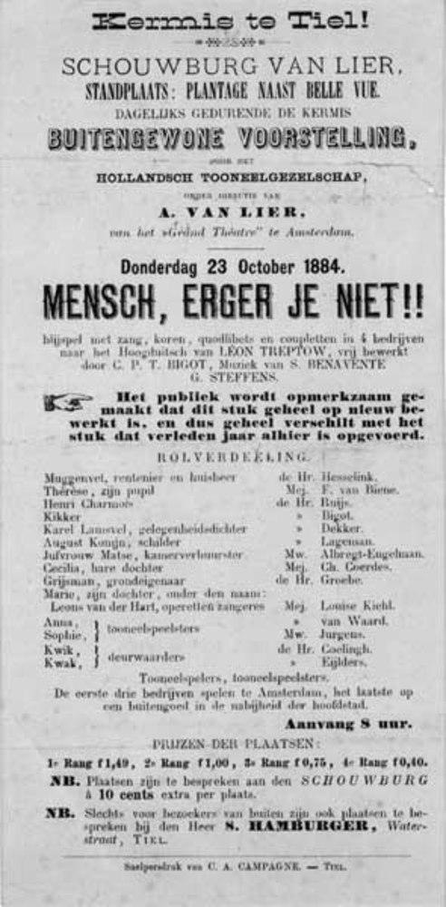 Affiche van de Buitengewone Voorstelling door het Ho...