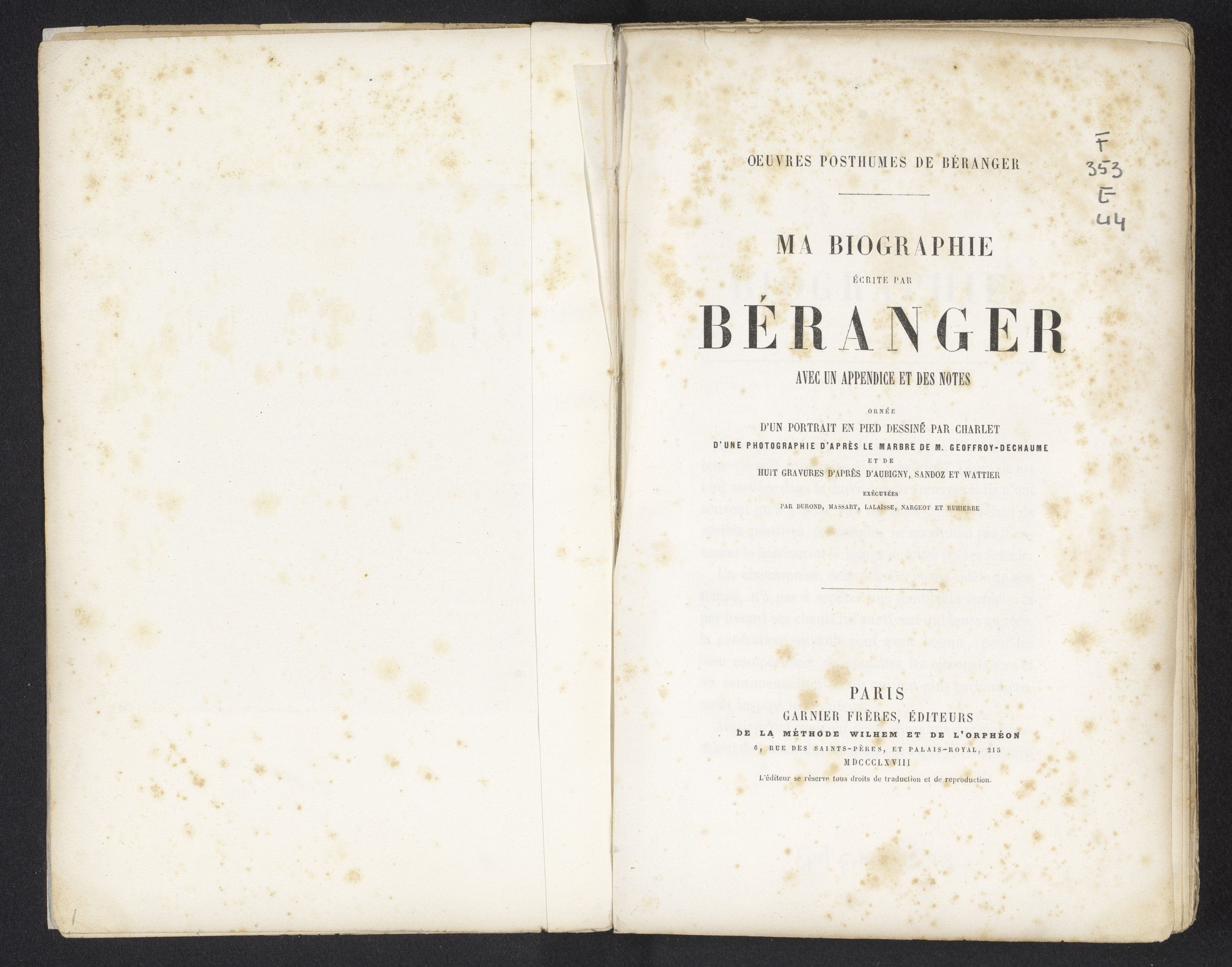 Oeuvres posthumes de Béranger: ma biographie écrit p...