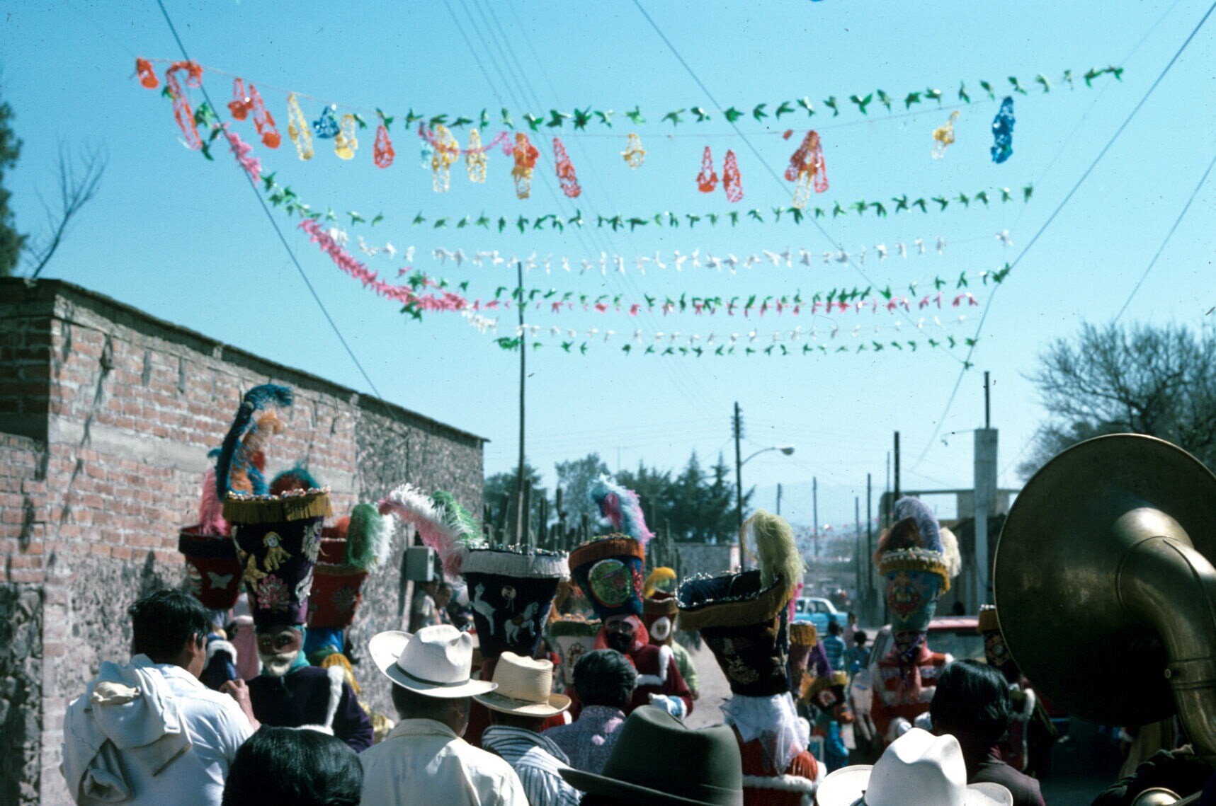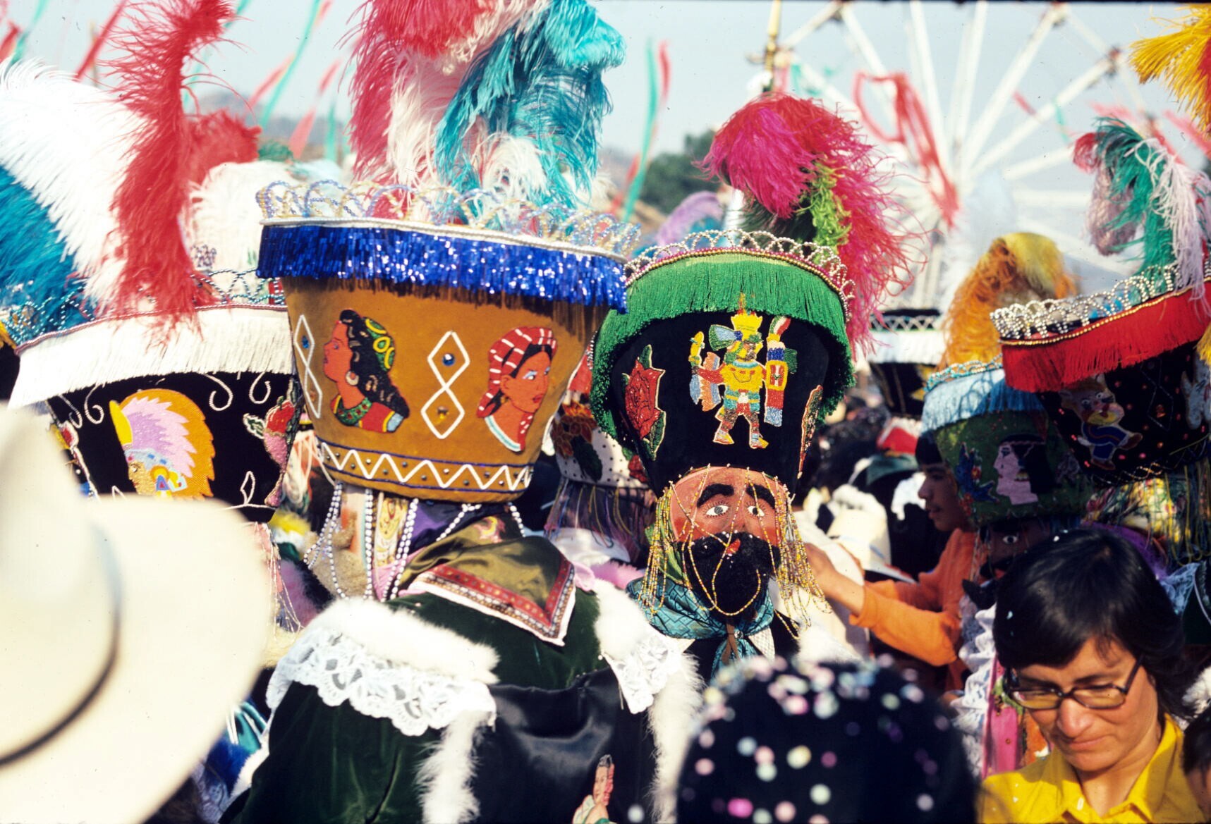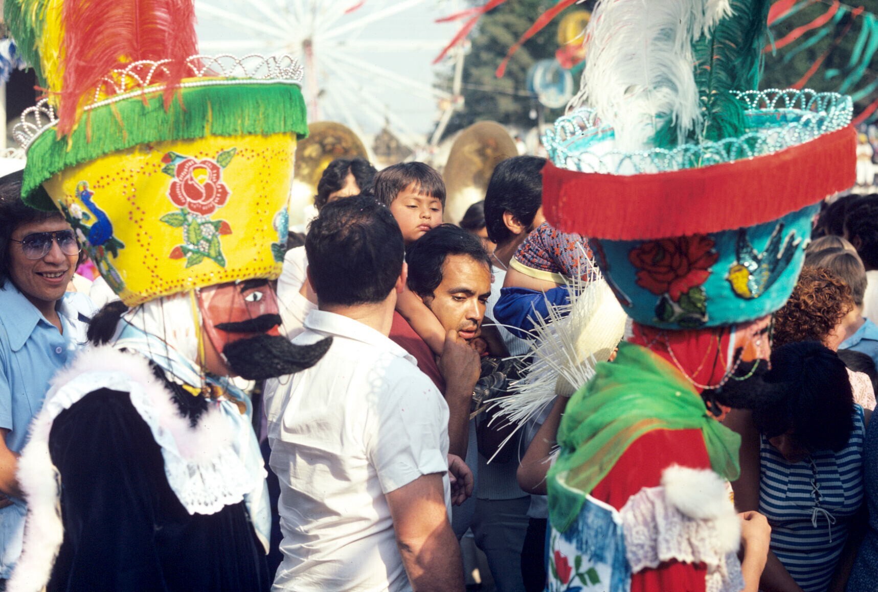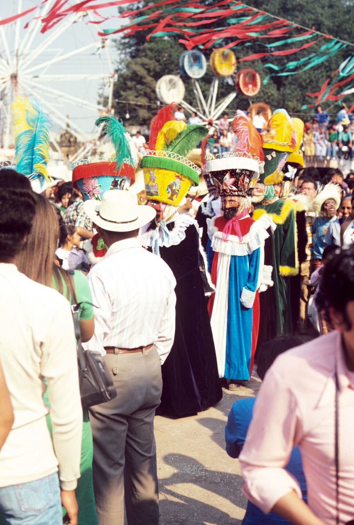 Chinelos (dansers), met 'feria' (kermis) op achtergrond