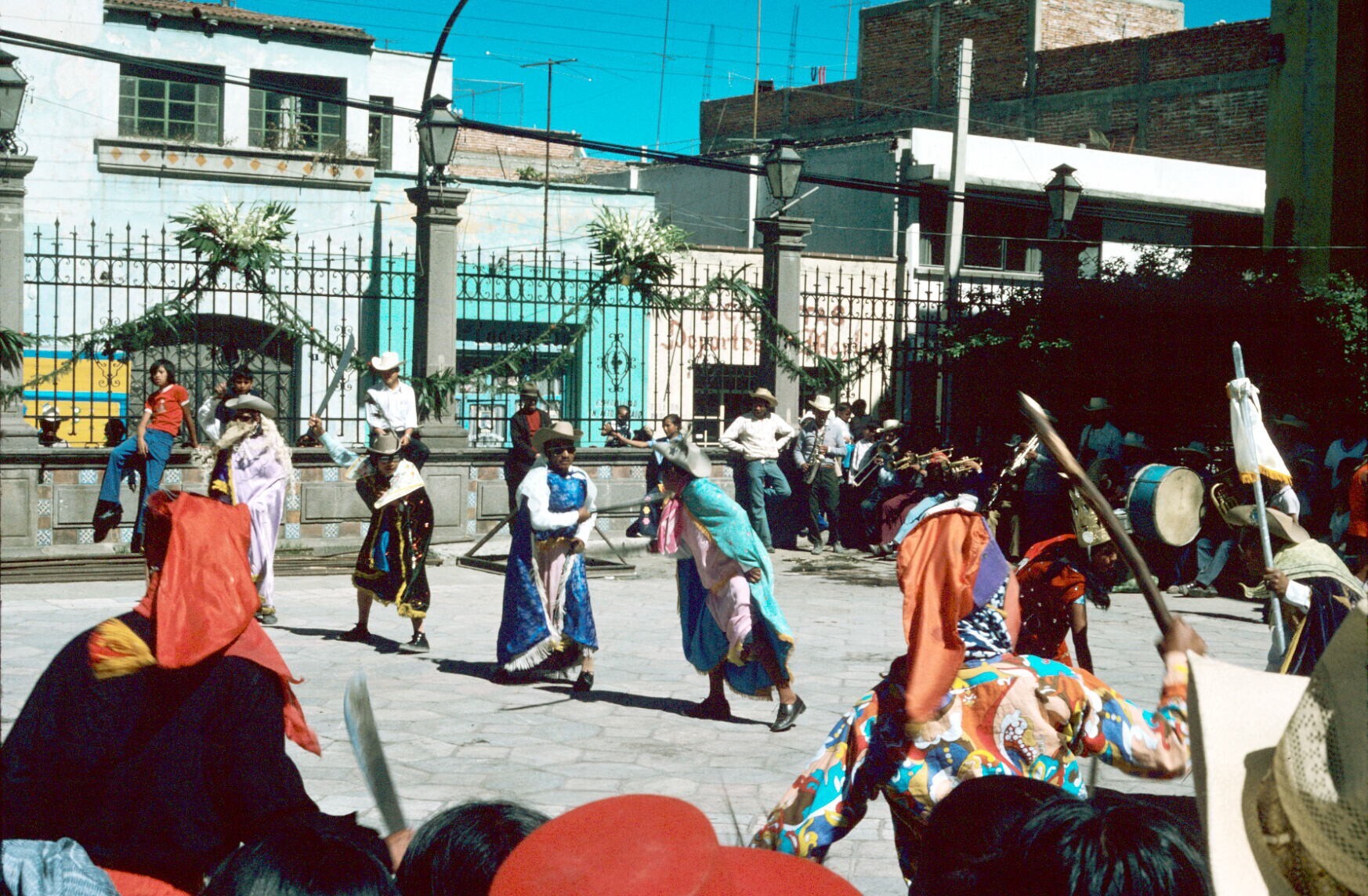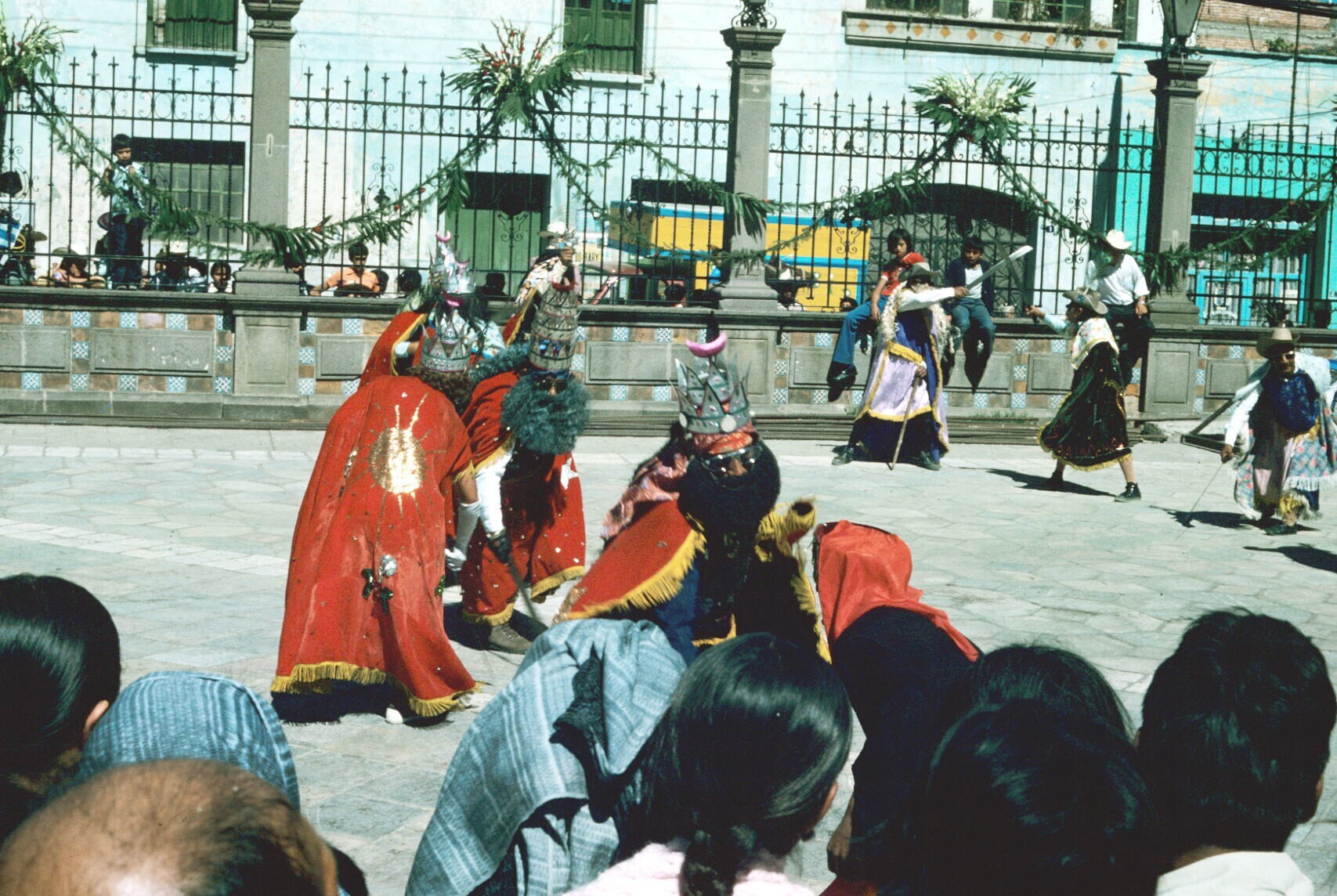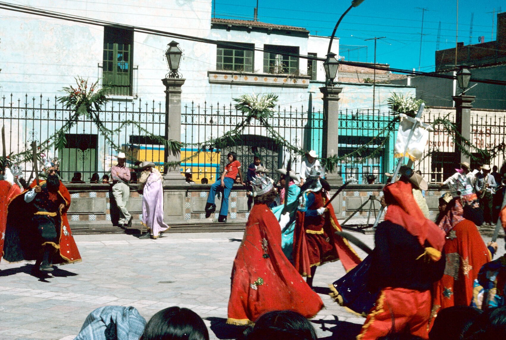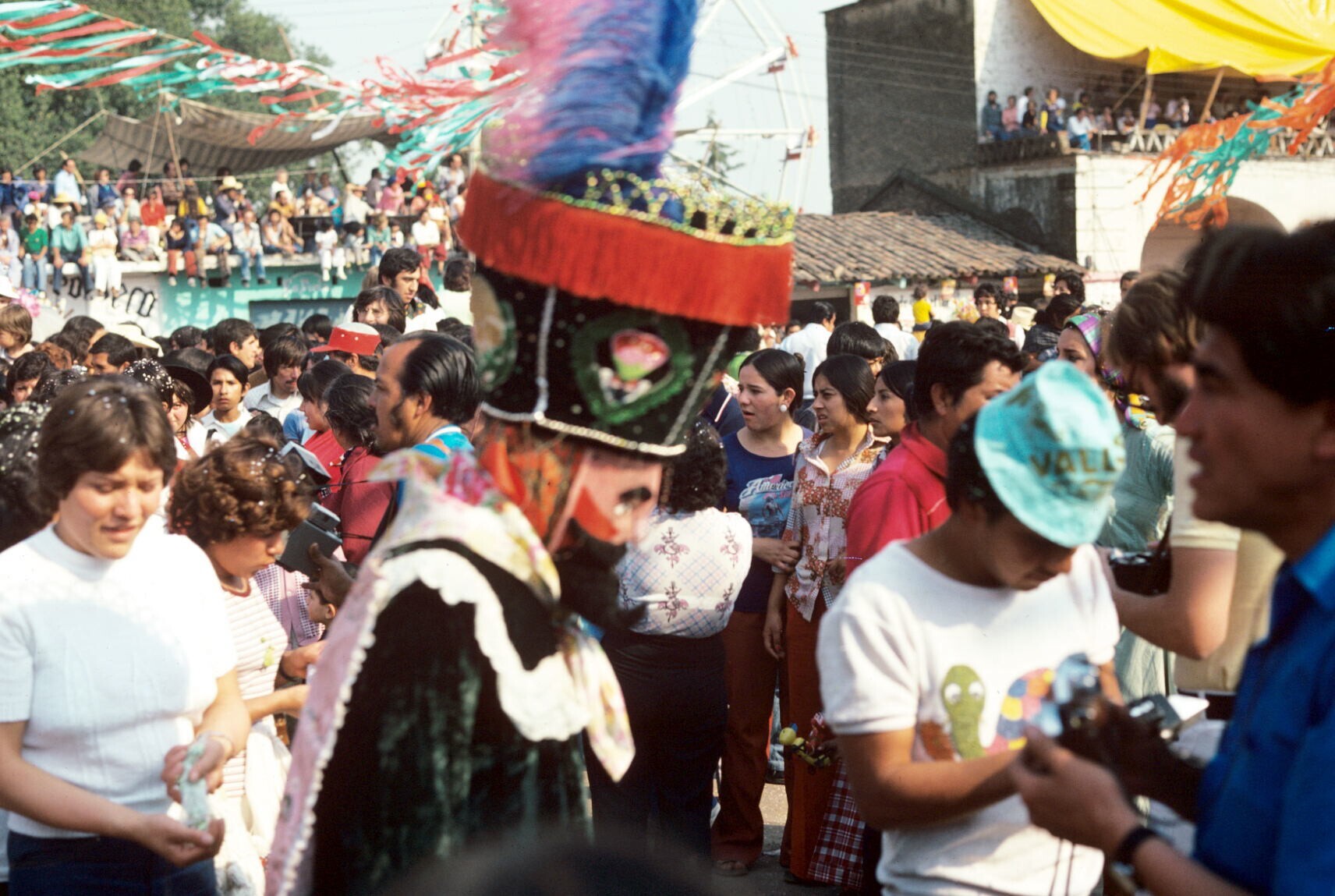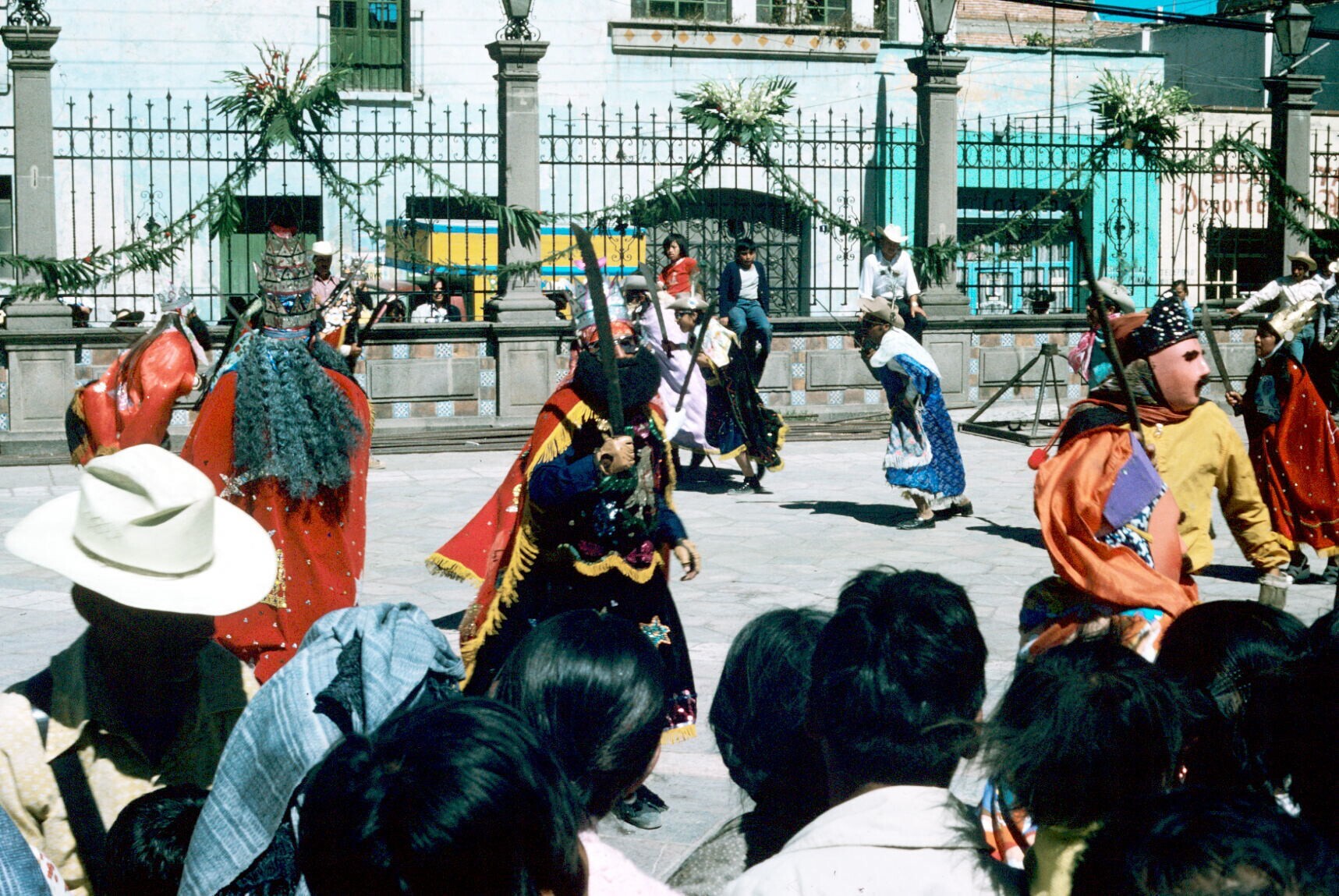 Chinelos (dansers), met 'feria' (kermis) op achtergrond