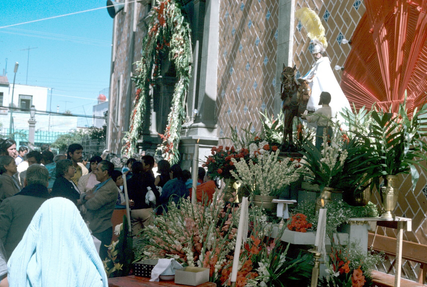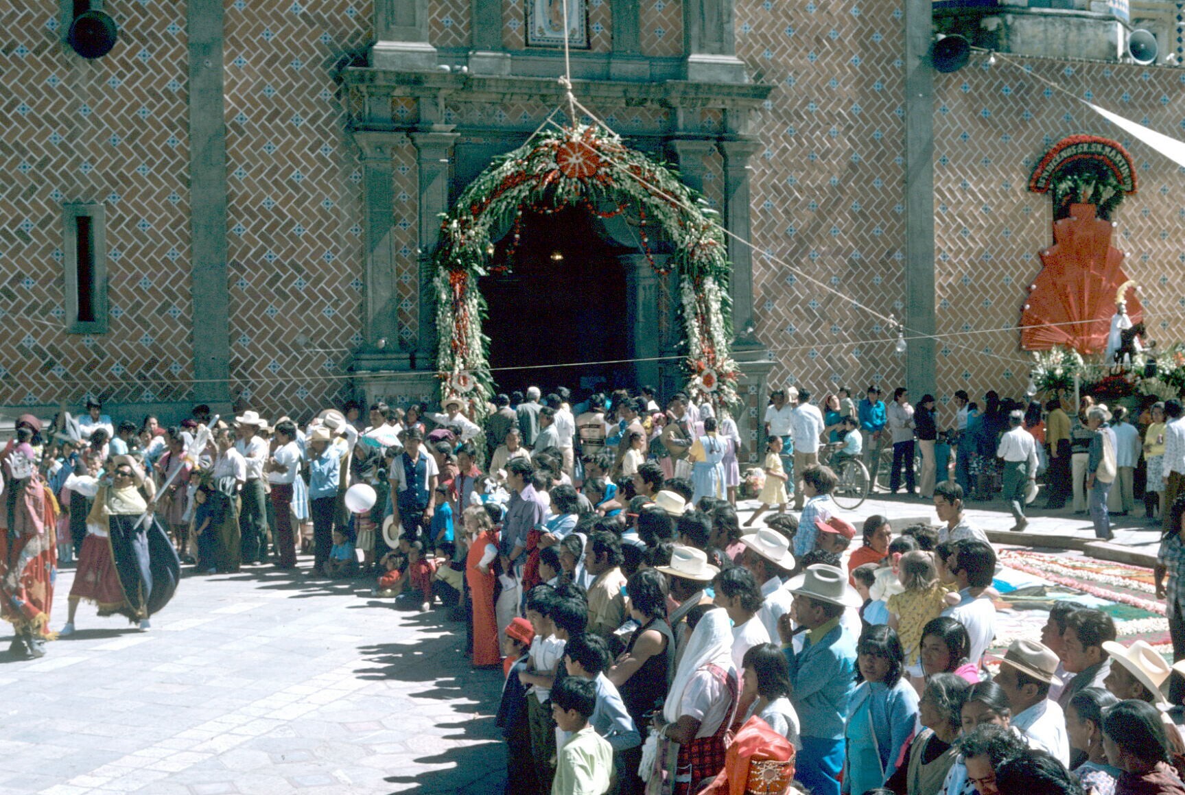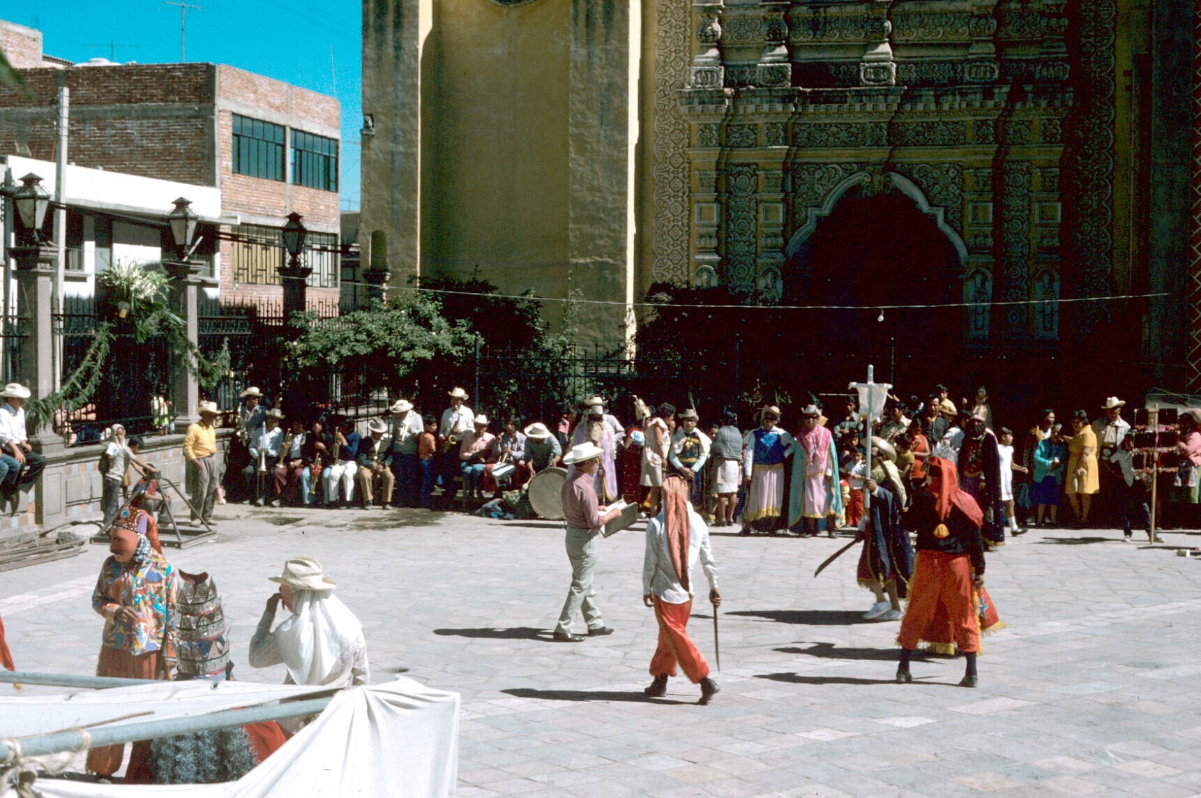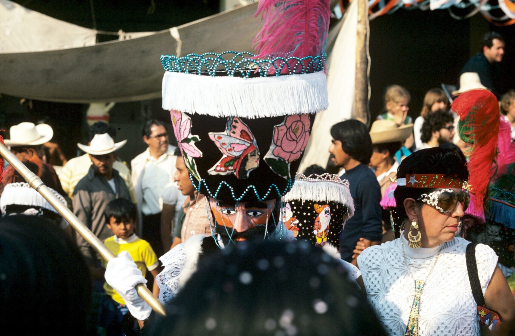Chinelos (dansers), met 'feria' (kermis) op achtergrond