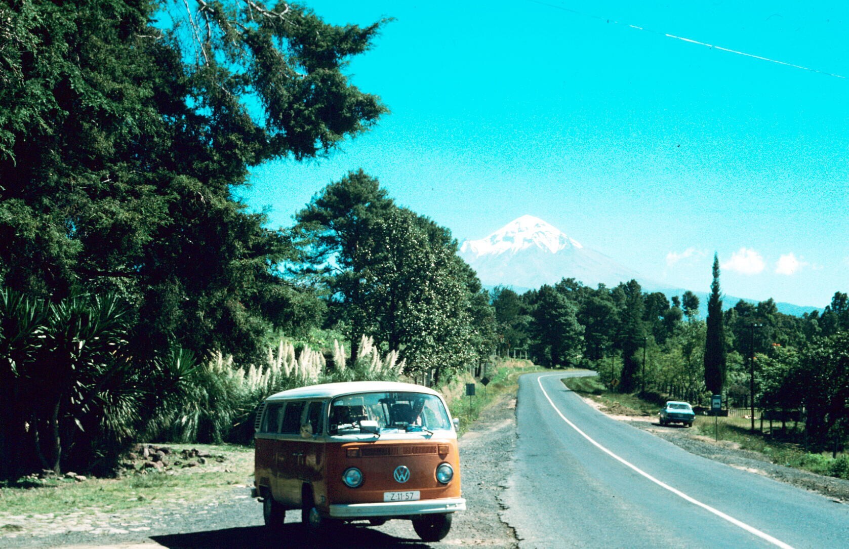 gehuurd VW-busje T.J.J.Leyenaar onderweg; op achterg...