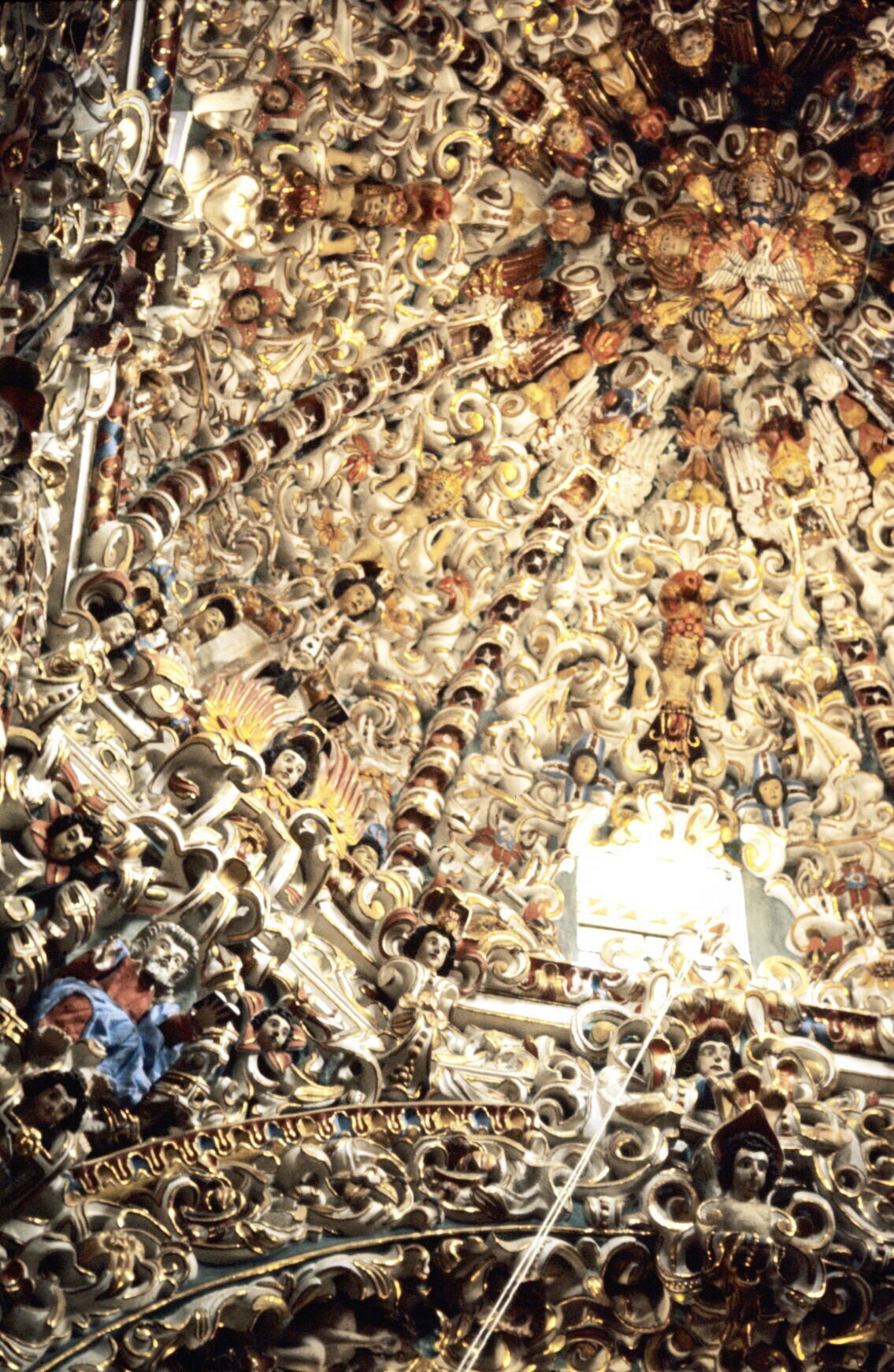 rijkversierd gewelf van koepel kerk Santo Domingo