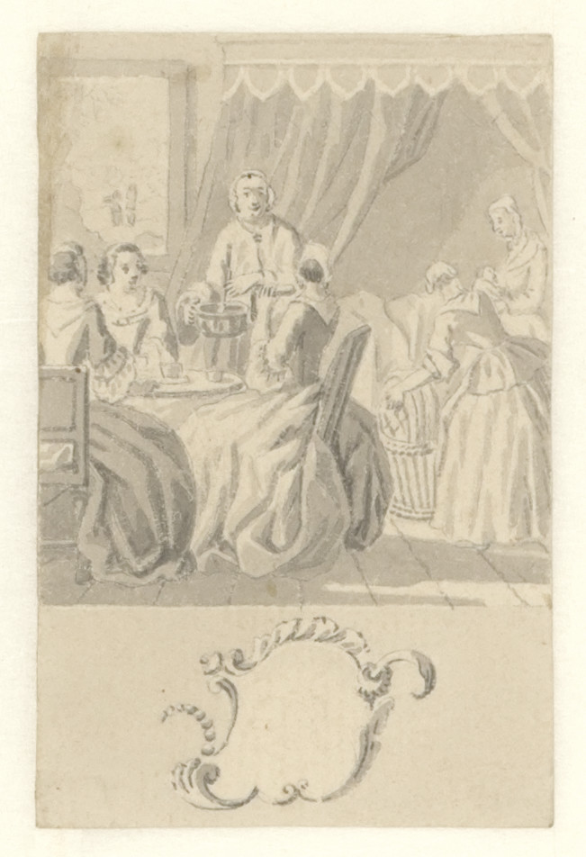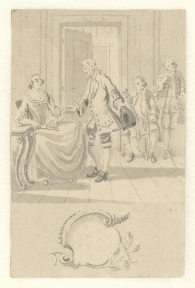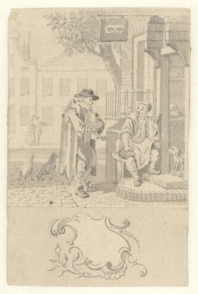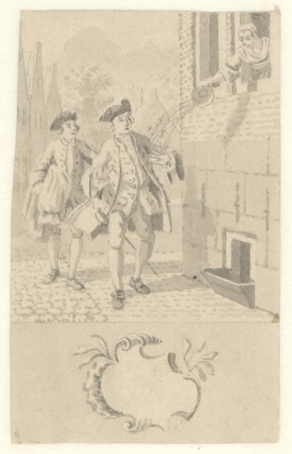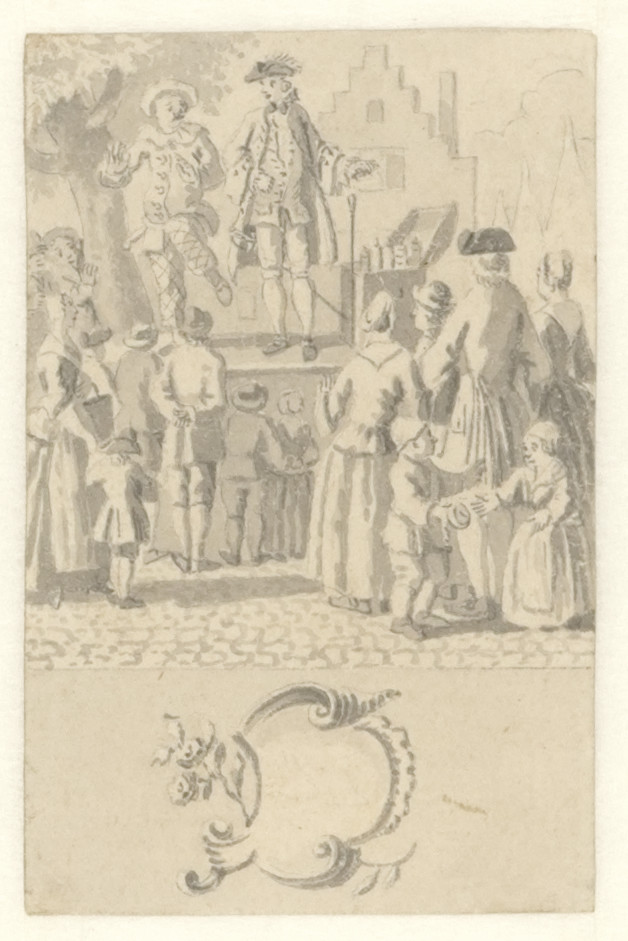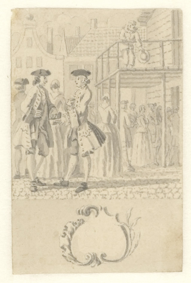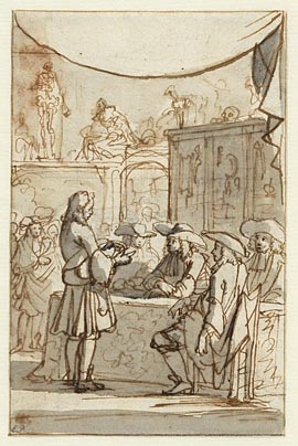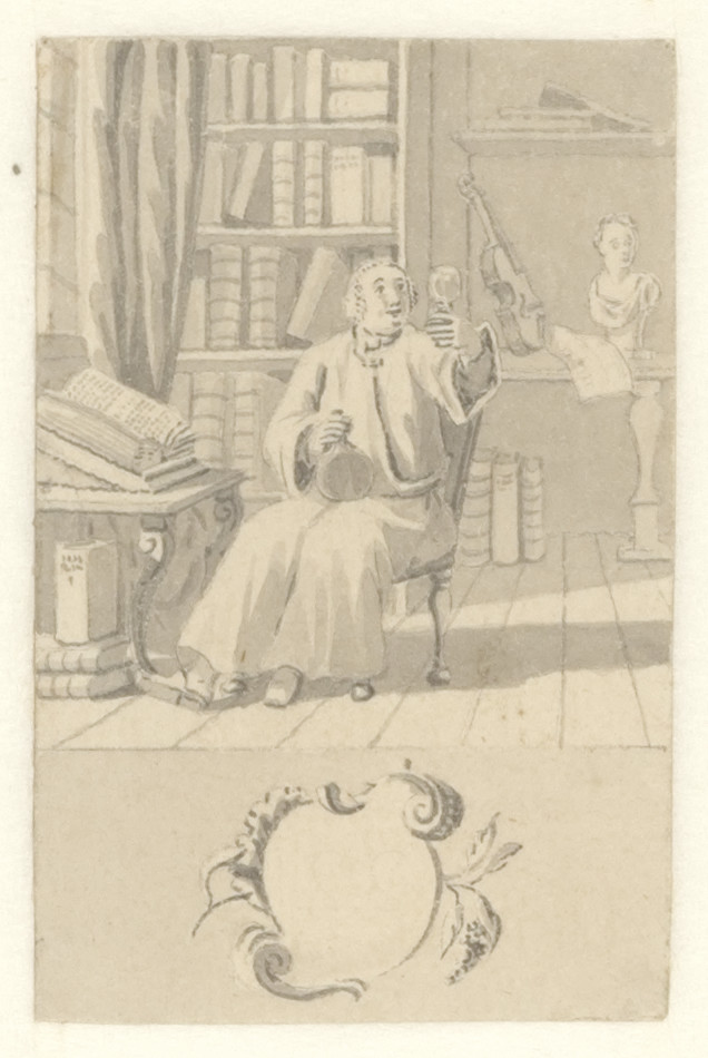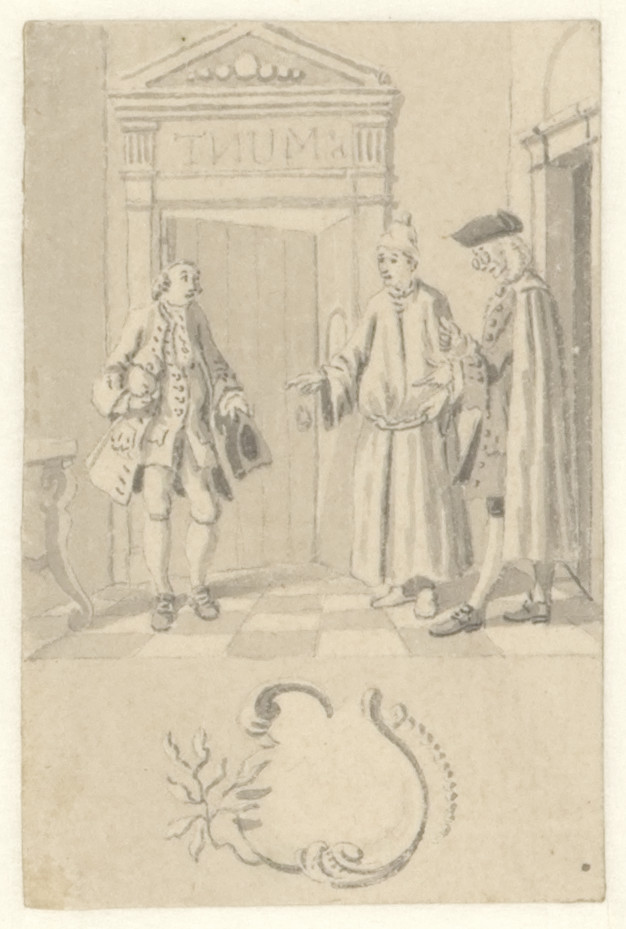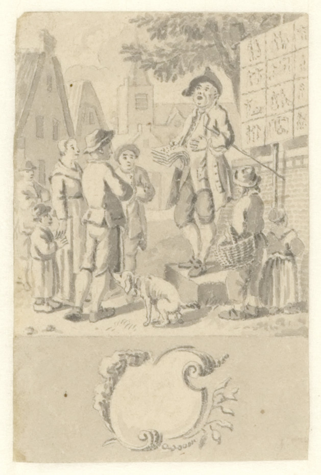 Voorstudie voor de titelprent " 't Nieuwe examen der...