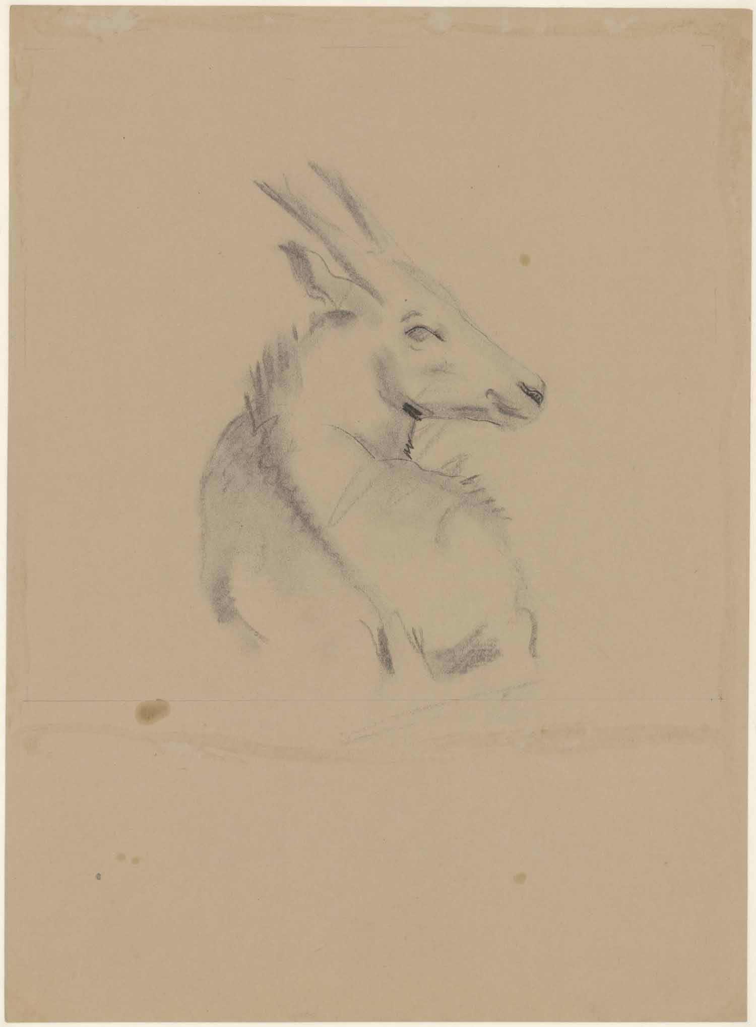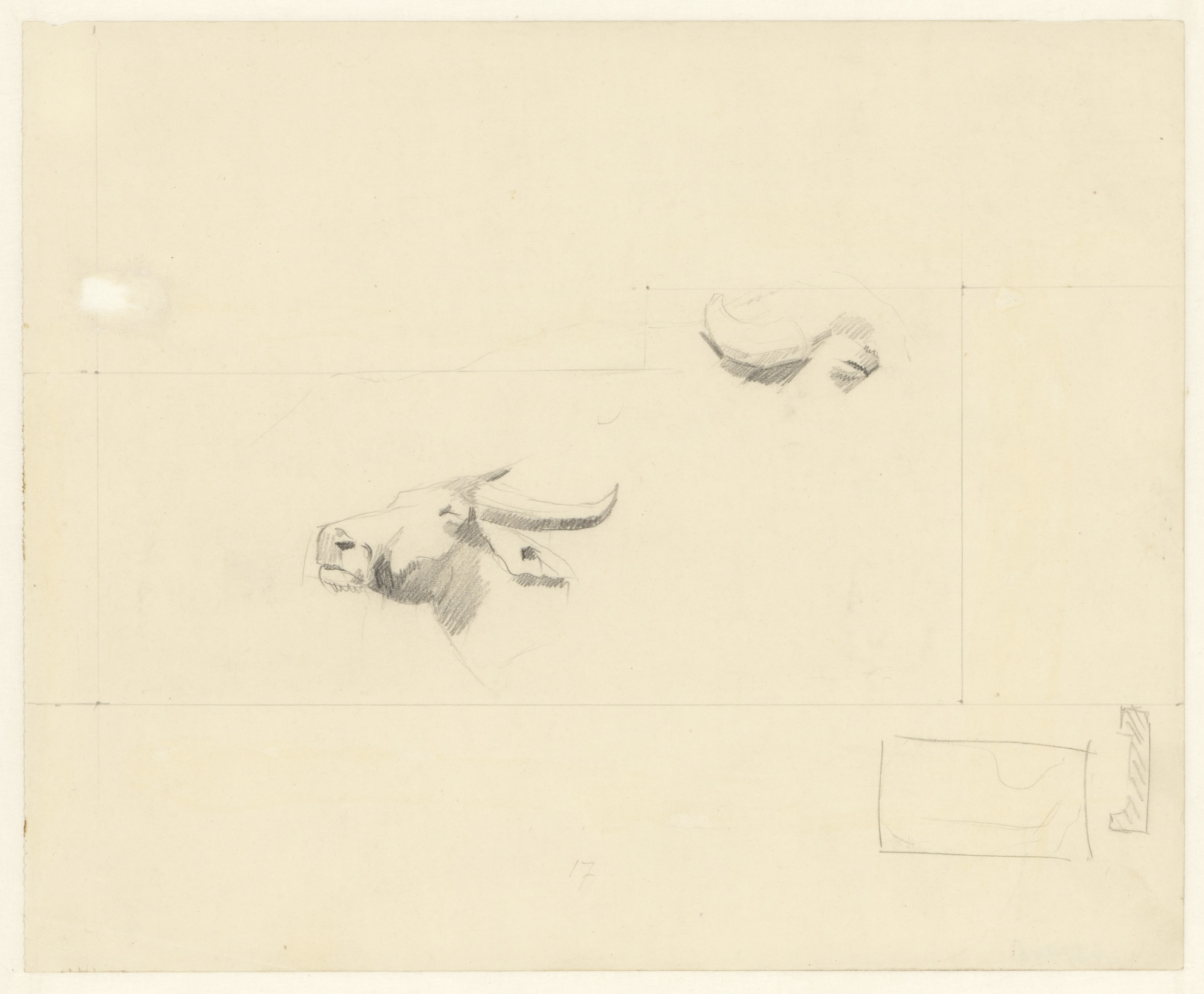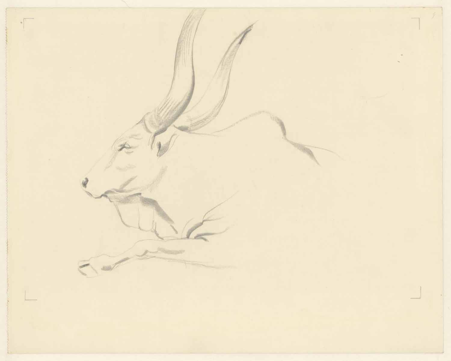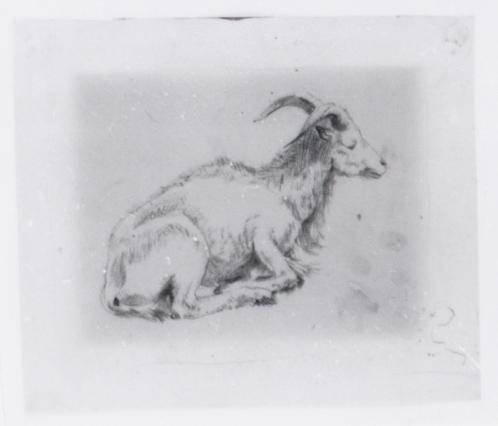 Liggend manenschaap in Artis (recto). Toren en poort...