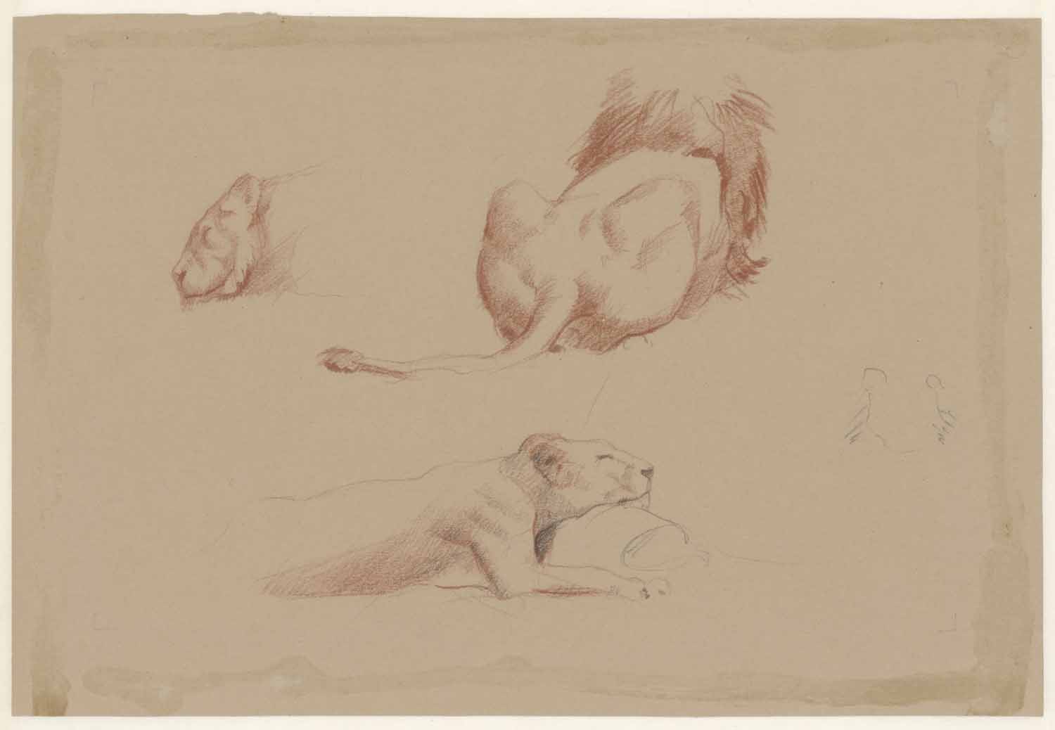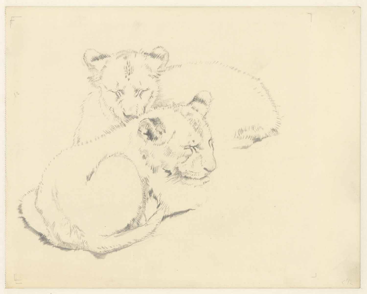Studieblad met leeuw en leeuwinnen in Artis