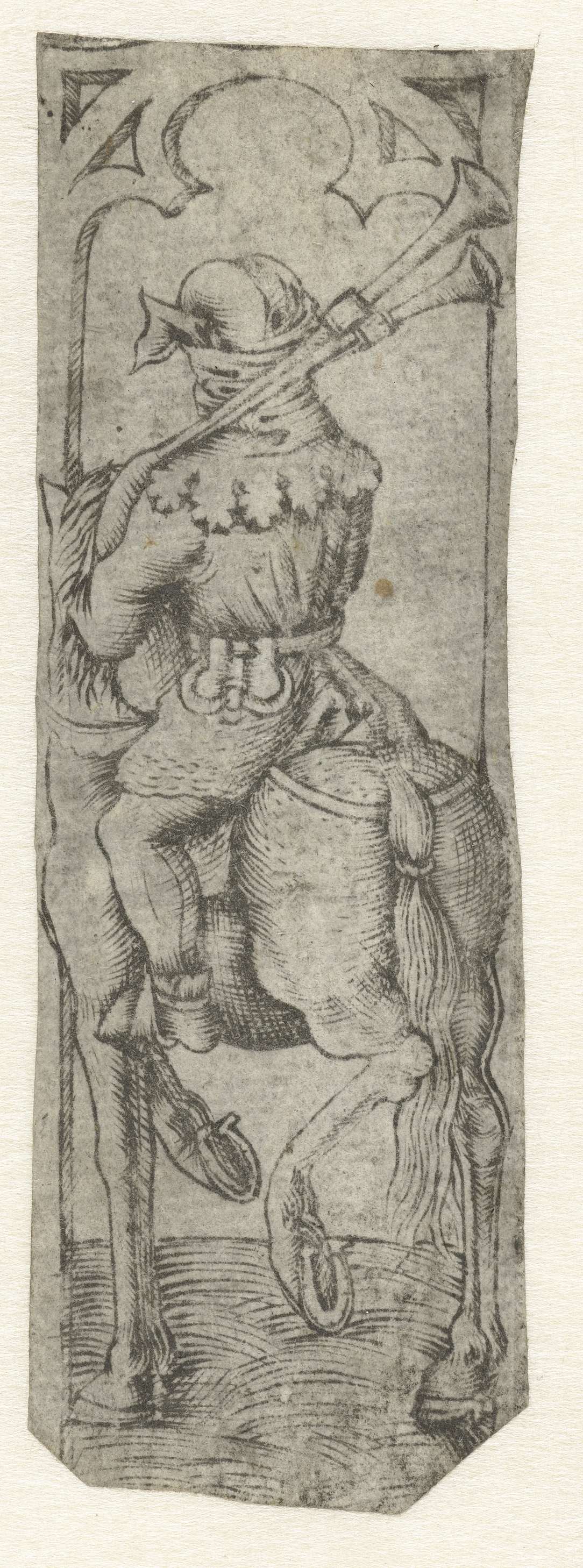 Man te paard met een doedelzak