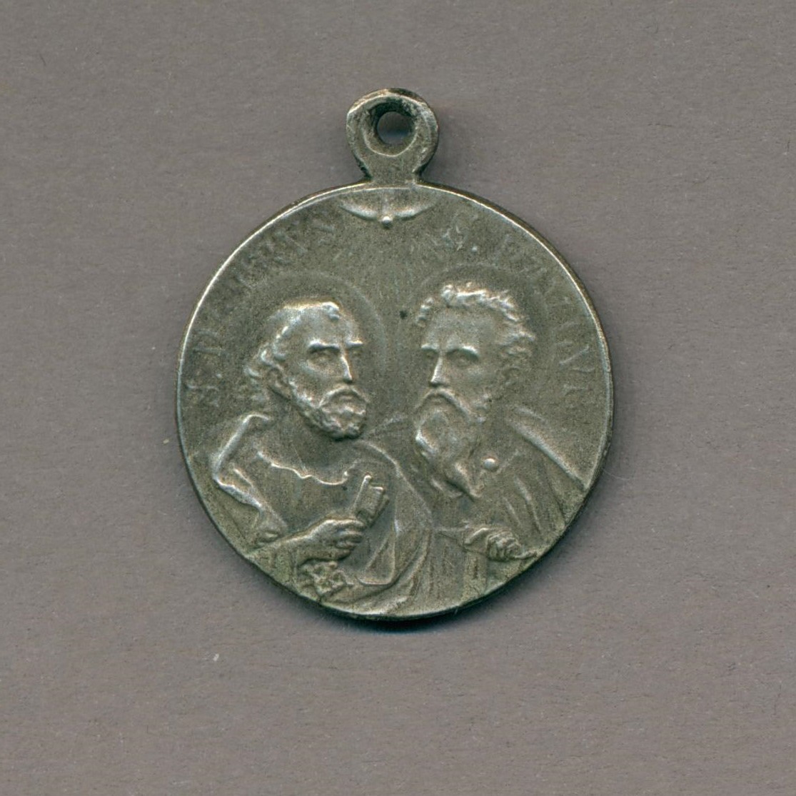 Draagpenning met Petrus en Paulus, kz. openen H. deur