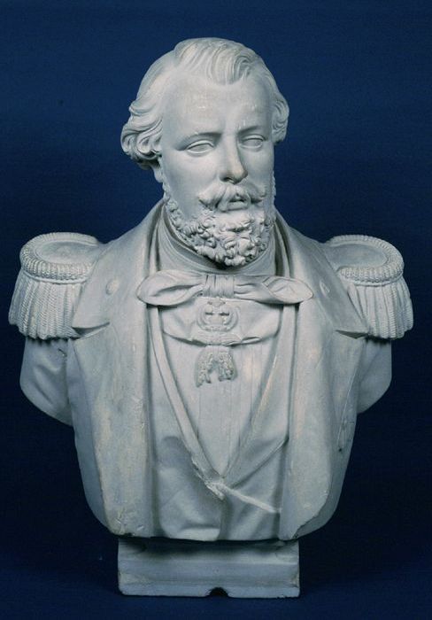 Borstbeeld van koning Willem III (1817-1890) in admi...