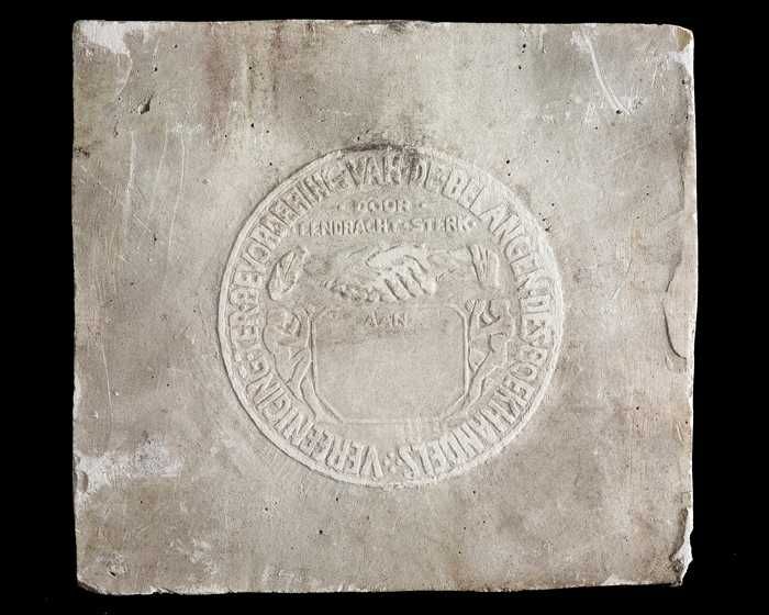 Gipsen model van gevelsteen Oude Hoofdpoort 1720