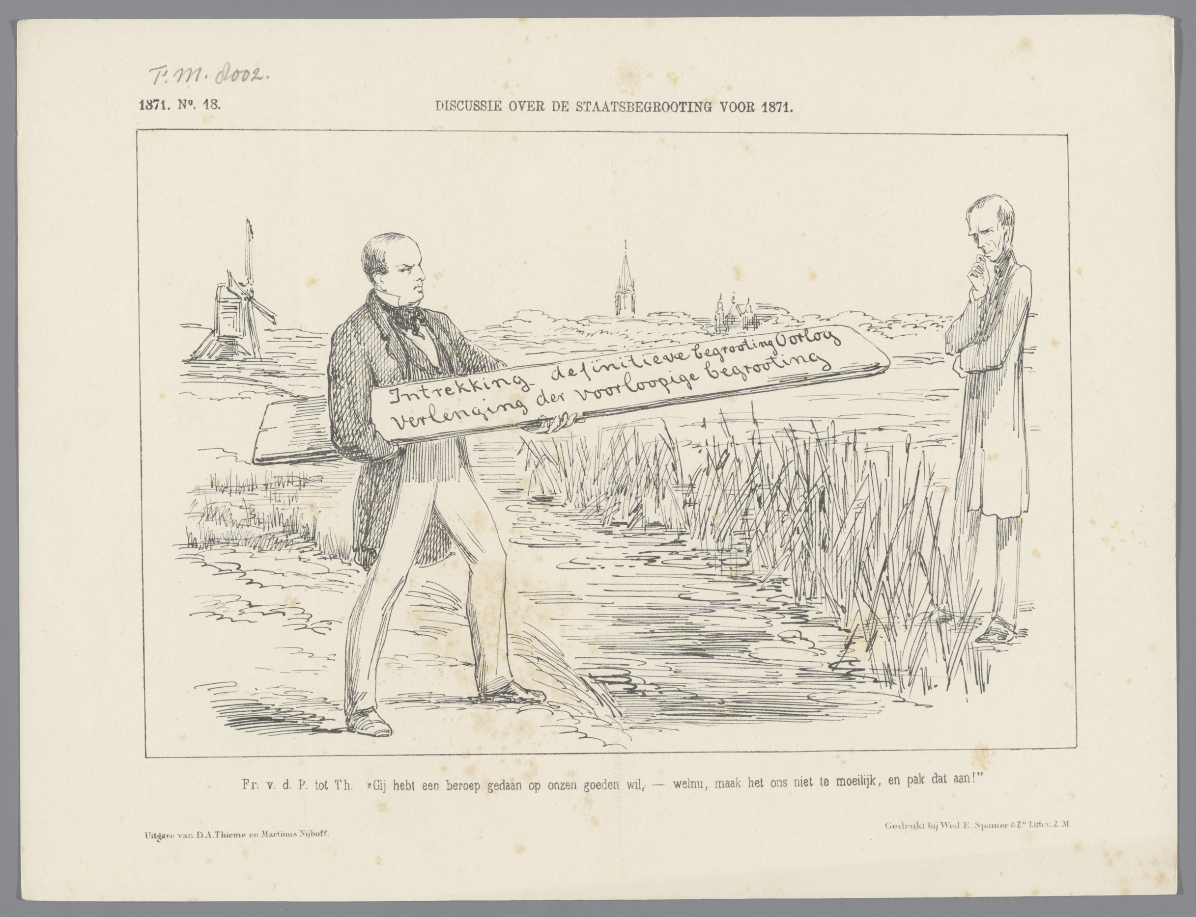 Spotprent op de verwerping van de begroting voor Ned...
