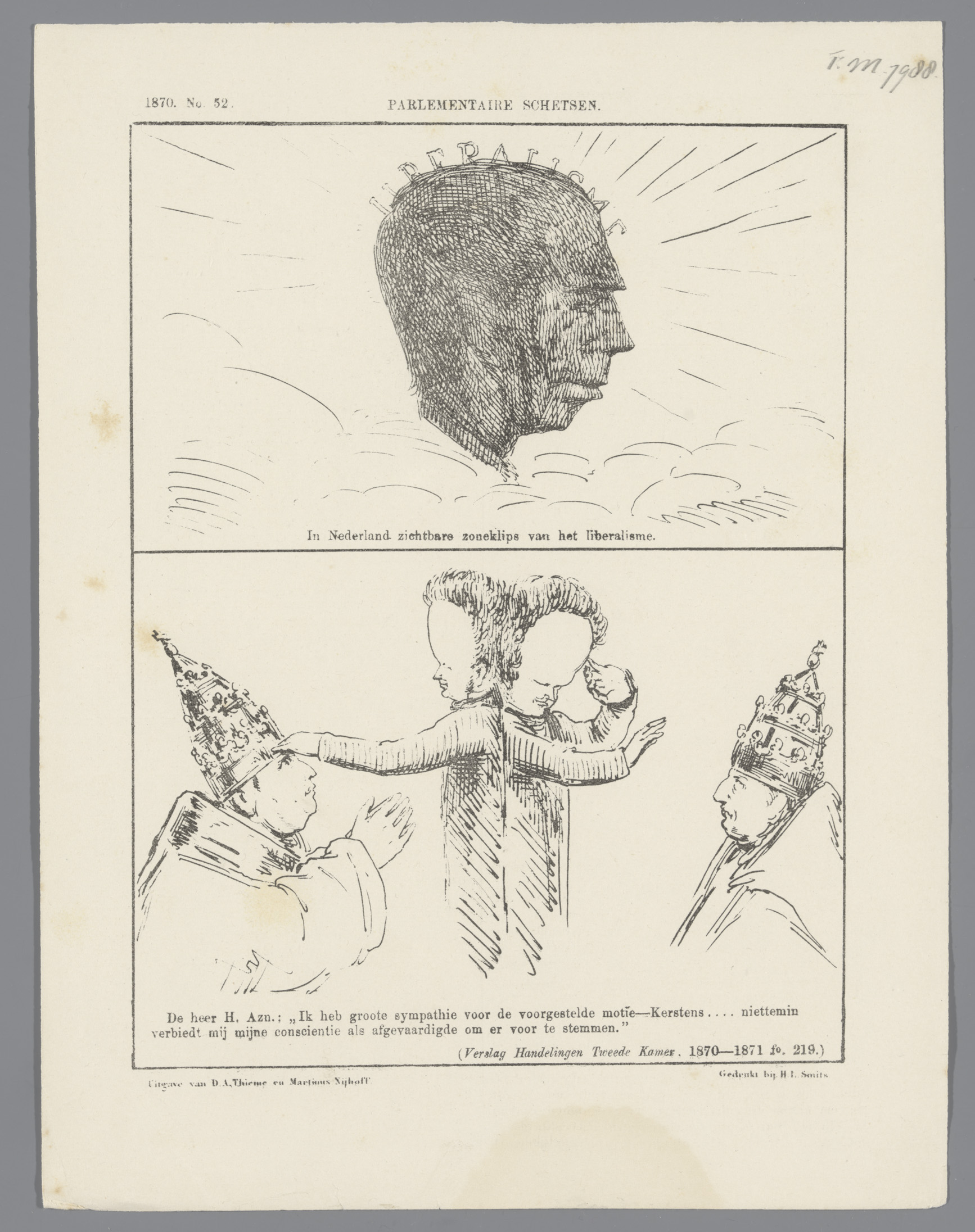 Spotprent met minister Van Mulken, 1870