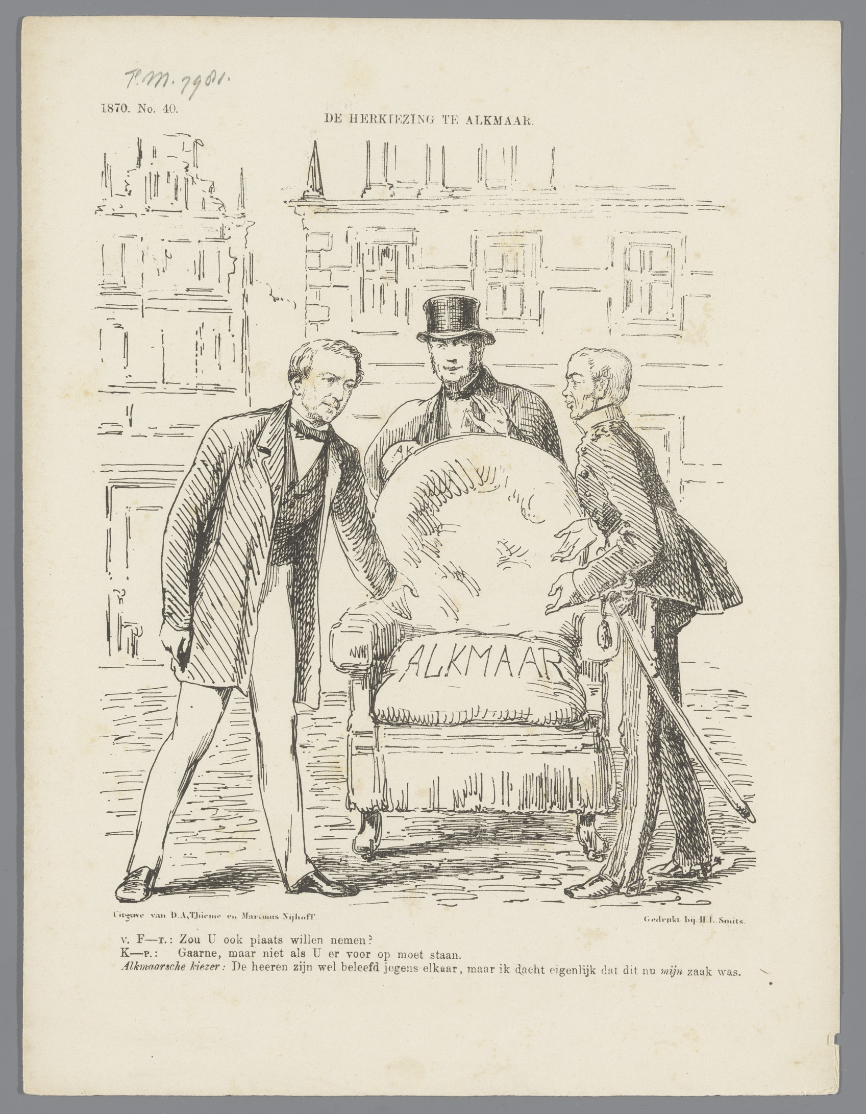 Spotprent rond de herverkiezing te Alkmaar, 1870