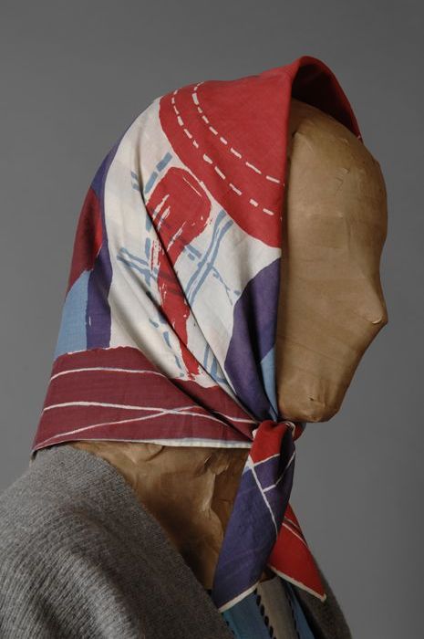 Vierkante shawl, wit katoen met opdruk in rood, blau...