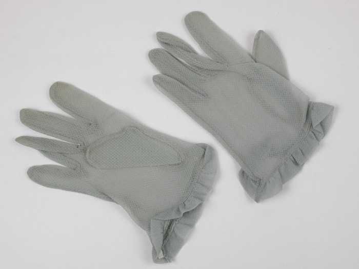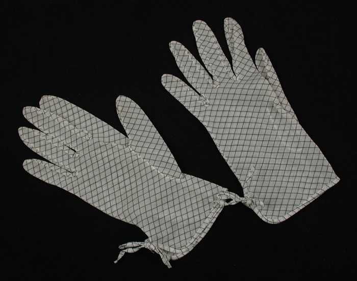Paar korte dameshandschoenen van wit synthetisch tri...