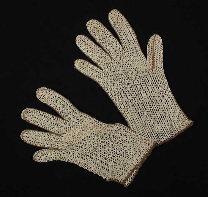 Paar korte dameshandschoenen van beige glanskatoen, ...