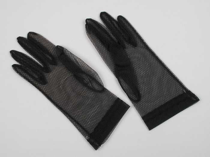 Paar korte dameshandschoenen van gaasachtig zwart sy...