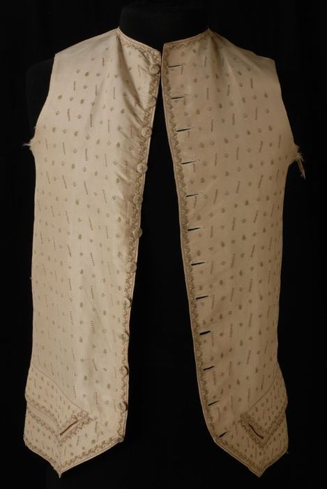 Herenvest van champagnekleurig zijde met tamboereerwerk