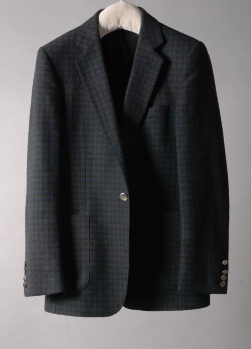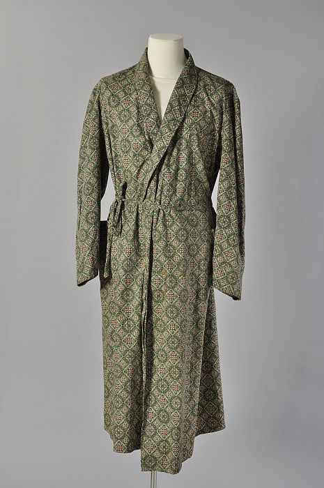 Herenochtendjas met groen-bruin blokmotief, overslag...