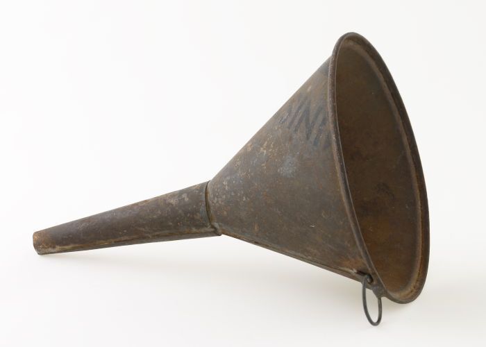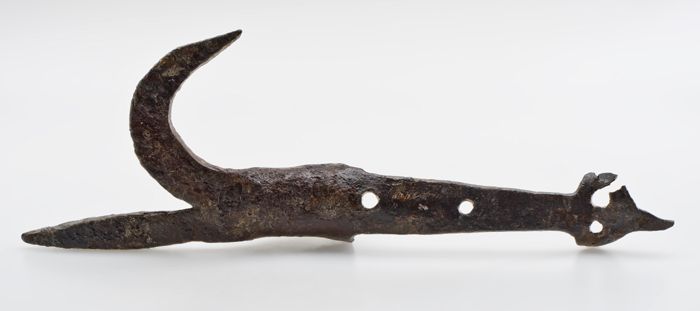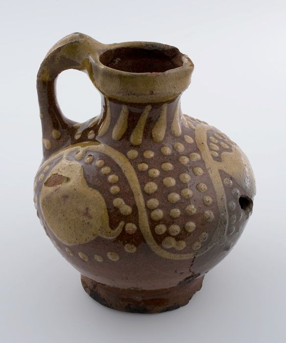 Aardewerk oliekan, slanke hals, bandoor, versierd in...
