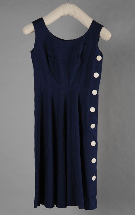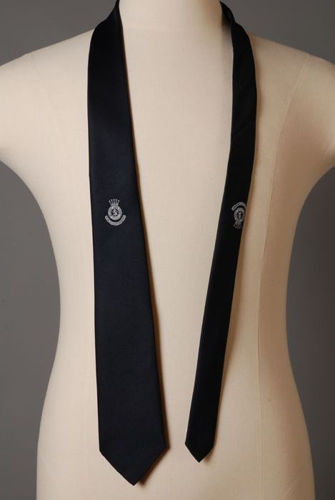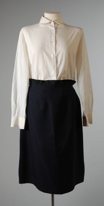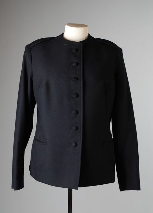 Tuniek van donkerblauwe wol met zwart band onderdeel...