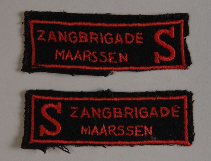 Emblemen, zwart vilt met rood borduursel "S / zangbr...