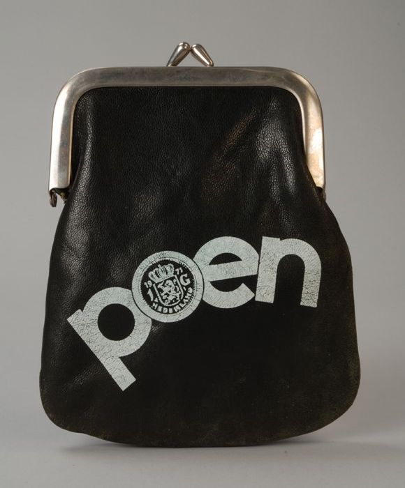 Portemonnee of beurs van roodbruin leer met metalen ...