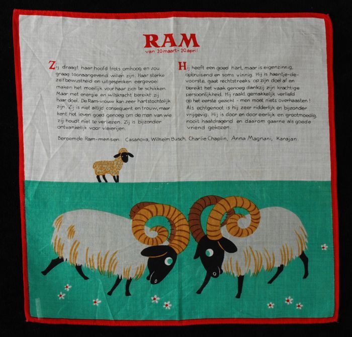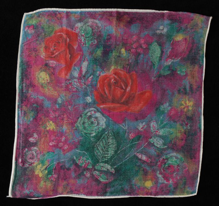 Wit katoenen zakdoek met opdruk in rood en groen van...