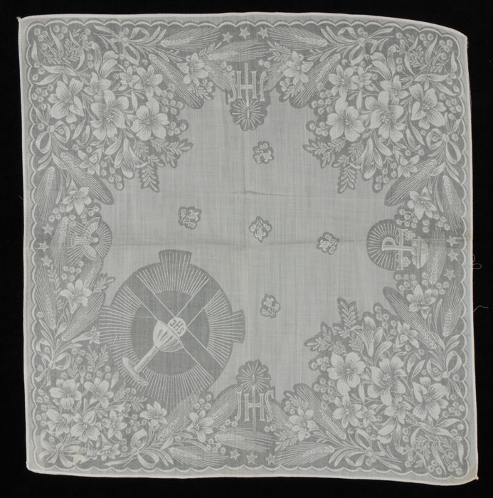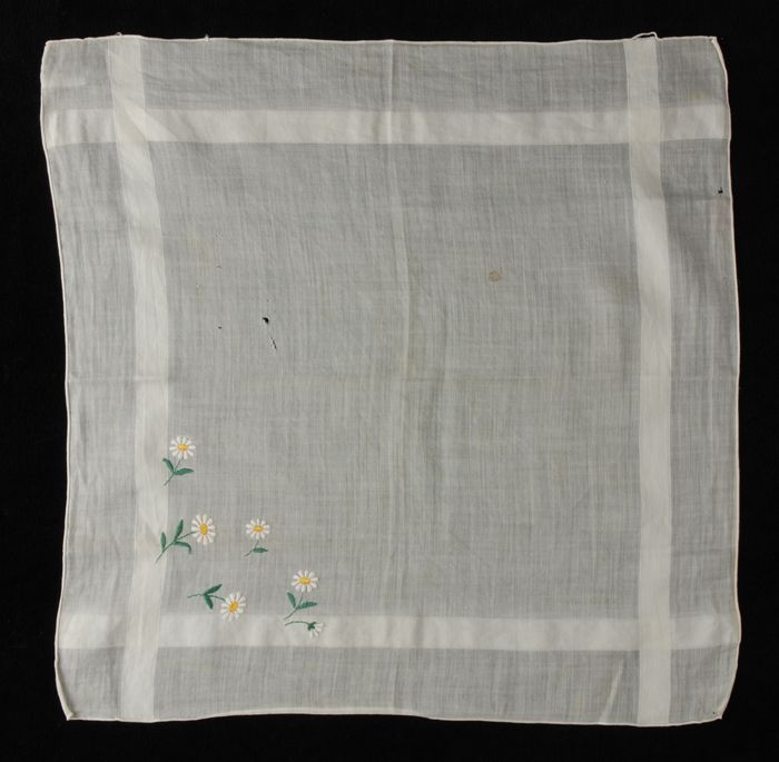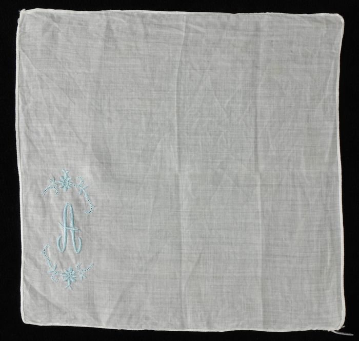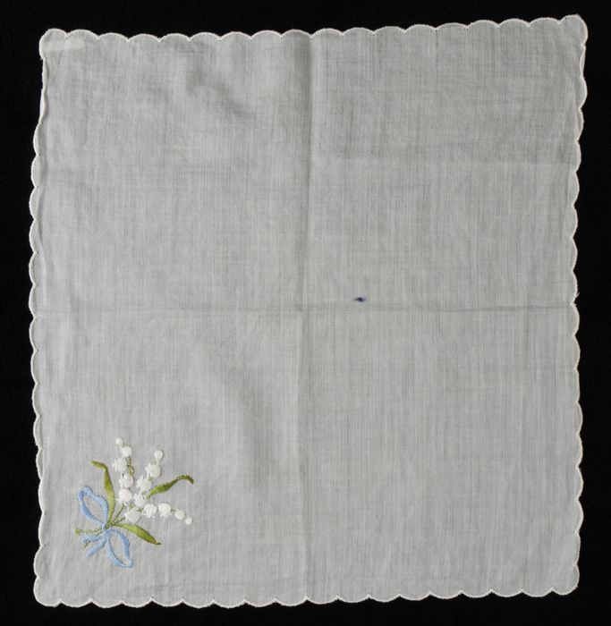 Vierkante wit batisten zakdoek met in één hoek gebor...