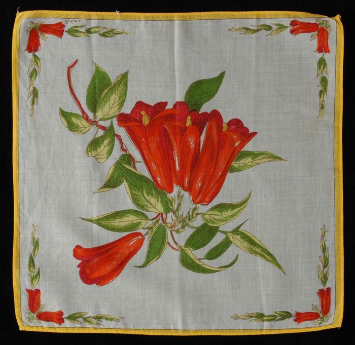 Vierkante wit katoenen zakdoek met tak met rode klok...