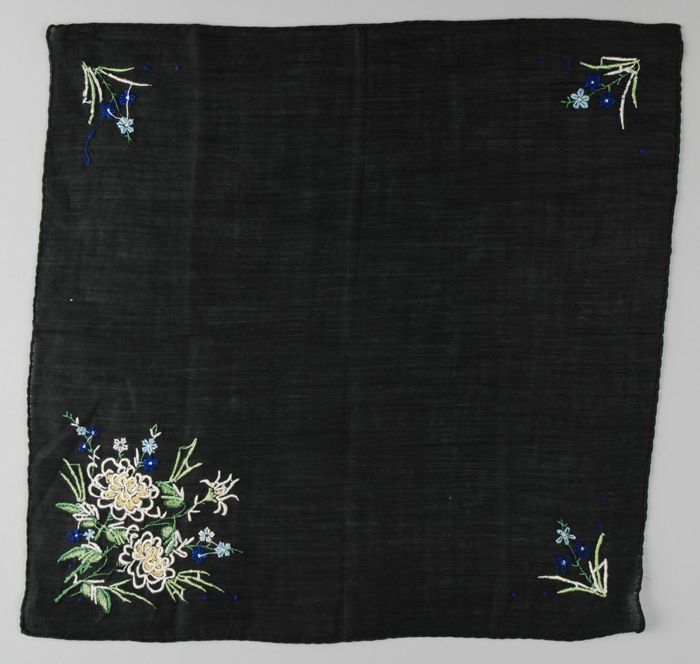 Vierkante zwart katoenen zakdoek met borduursel in g...