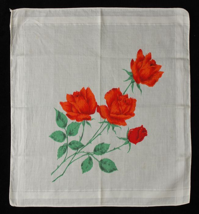 Vierkante wit katoenen zakdoek met rode rand, gekleu...