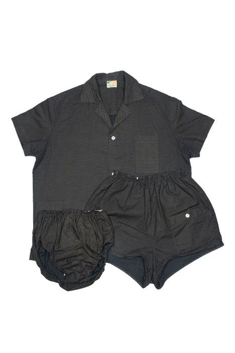 Badpak van katoen met olijfgroen dessin met roze blo...