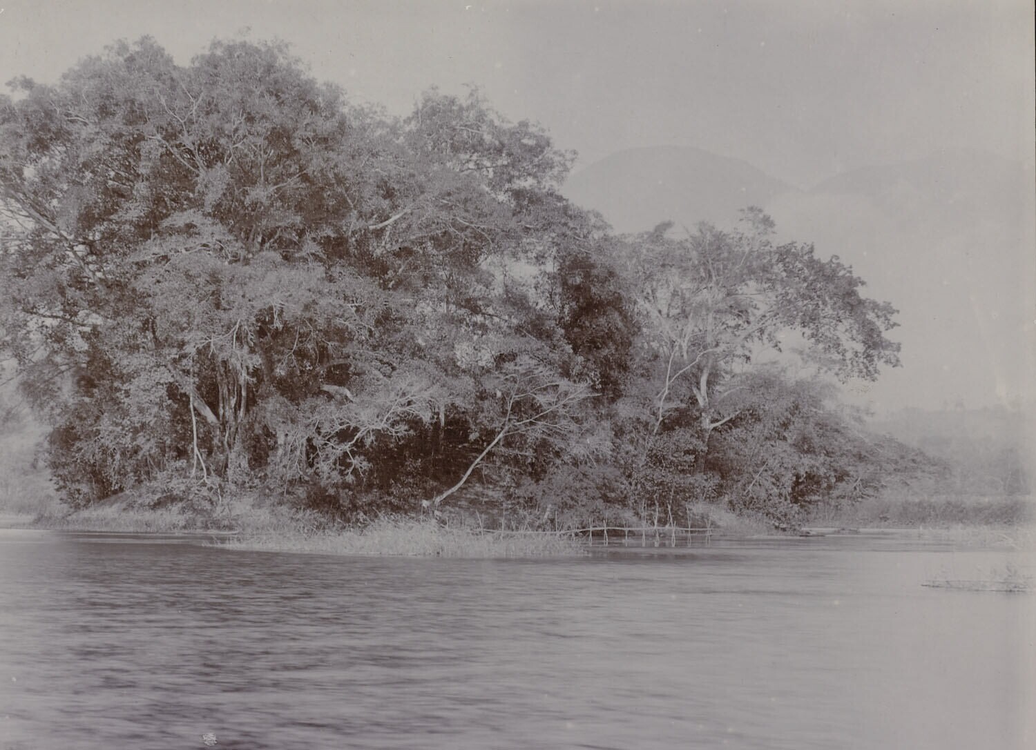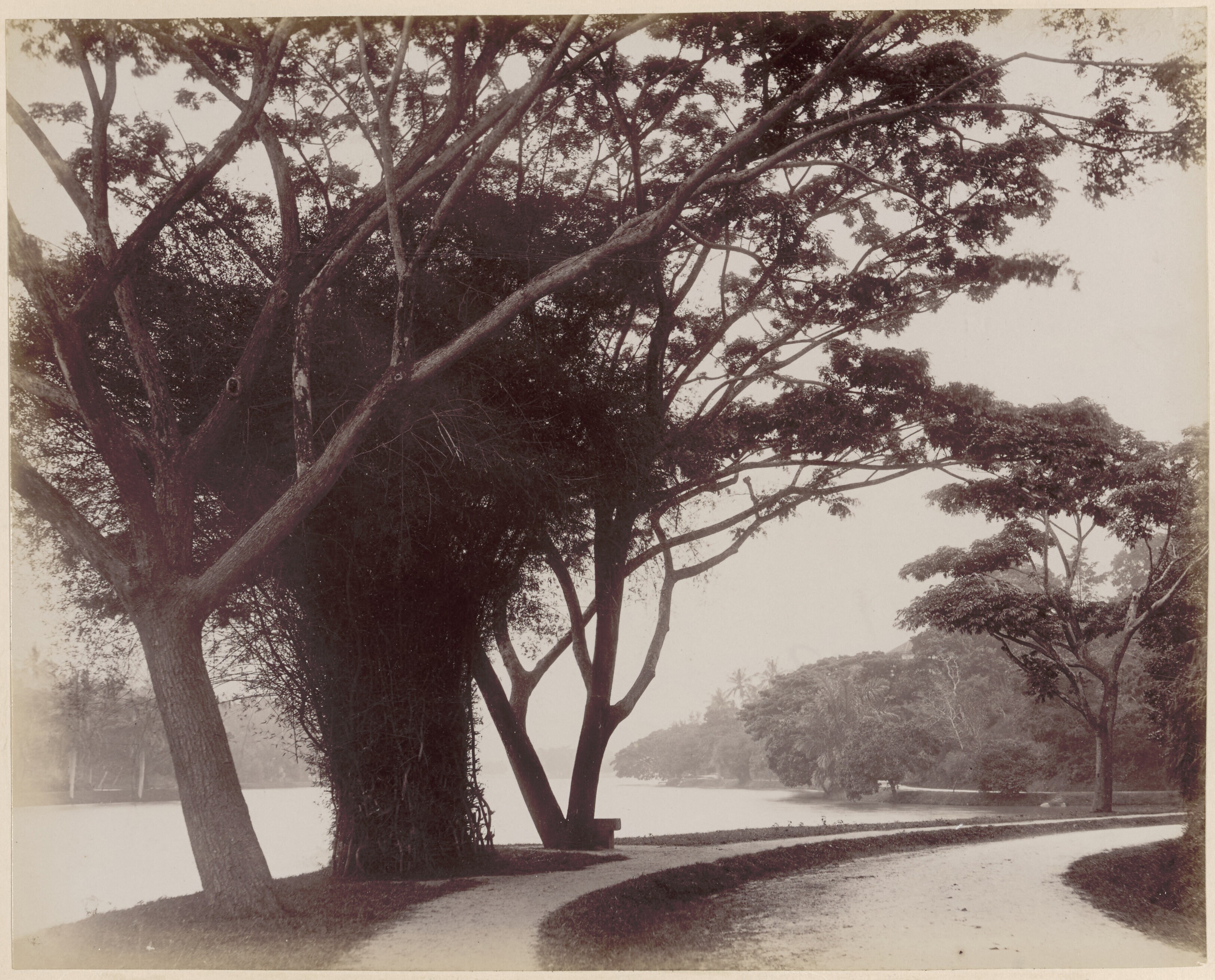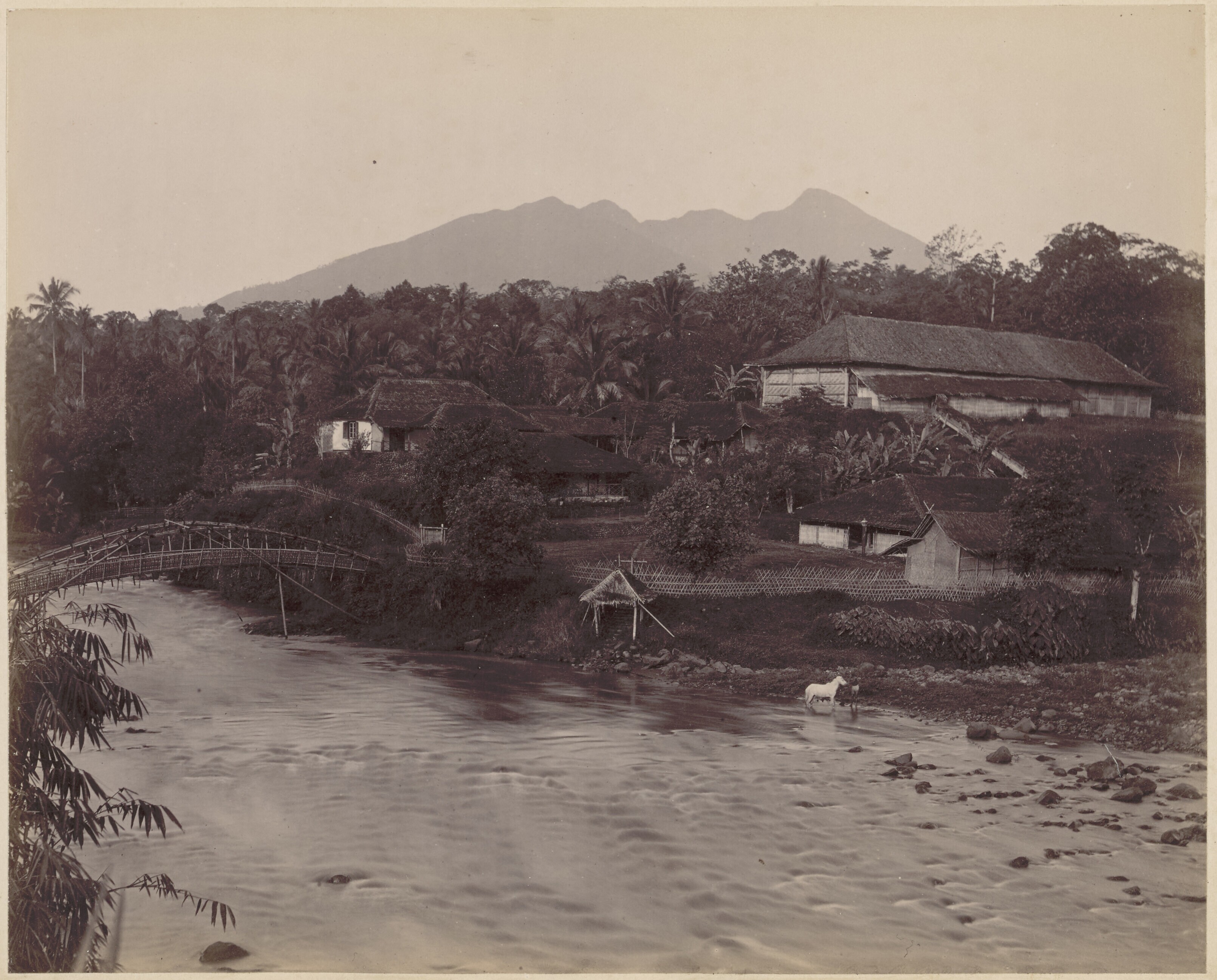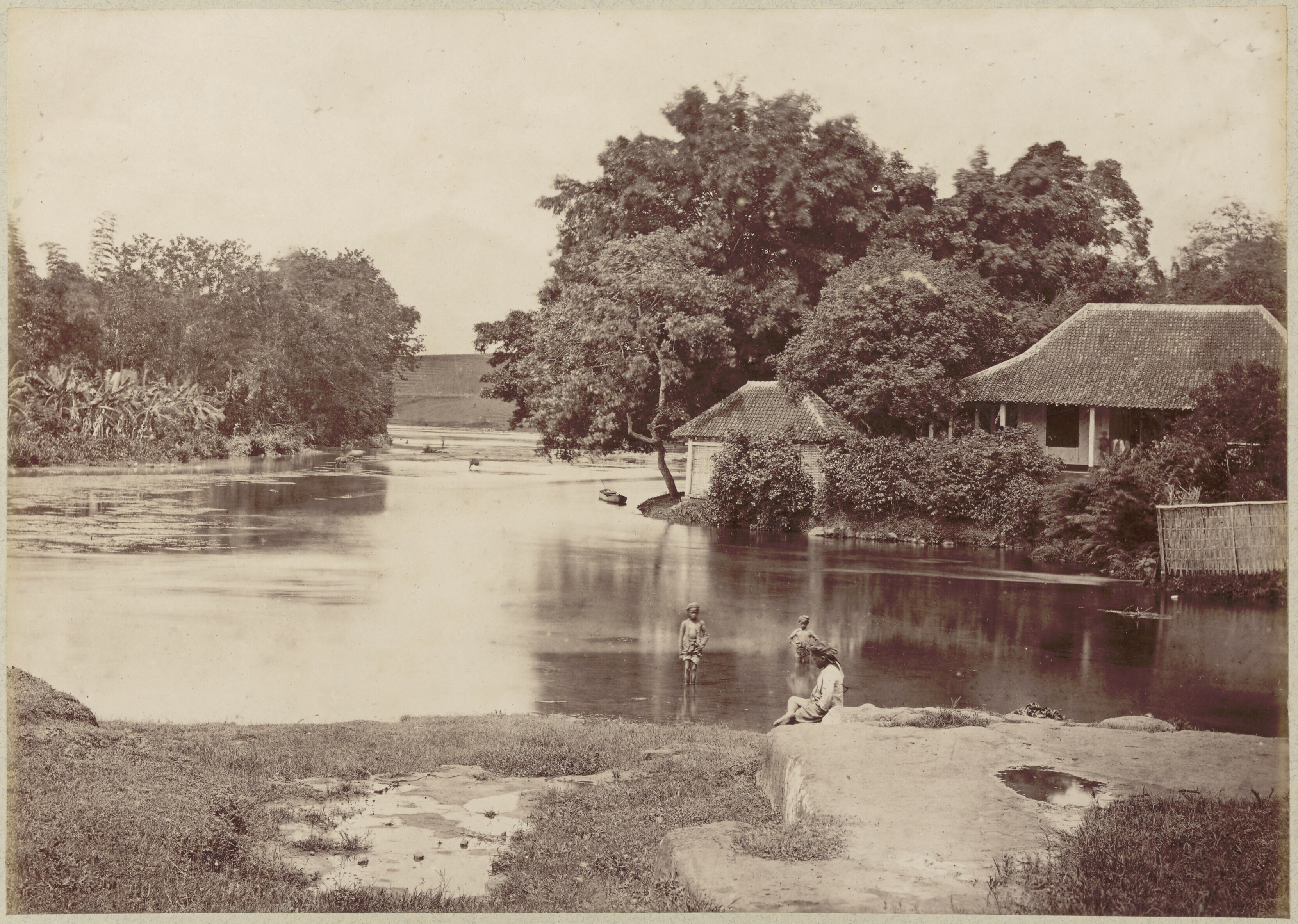 Landschap met water en bos, waarschijnlijk op Java