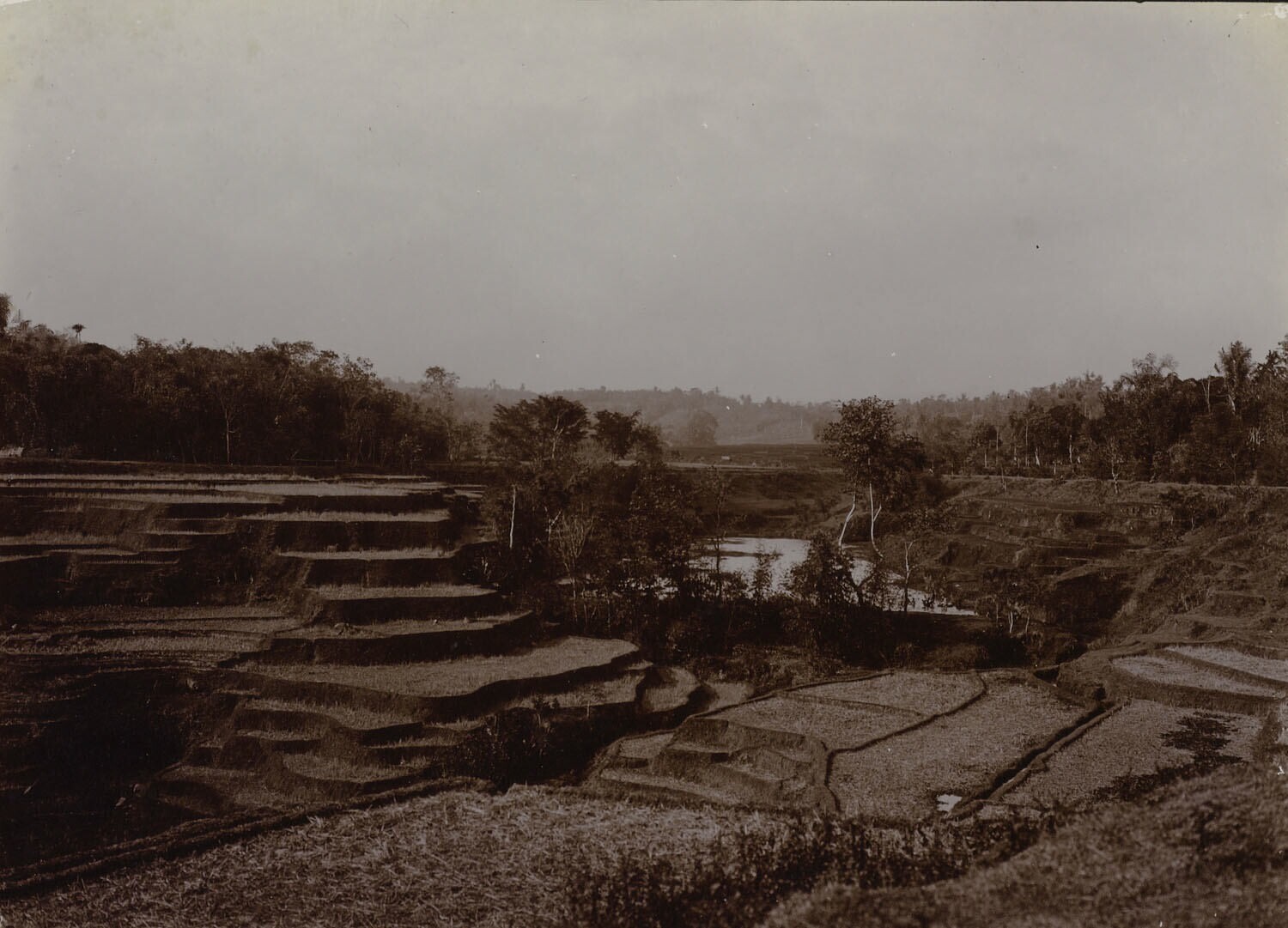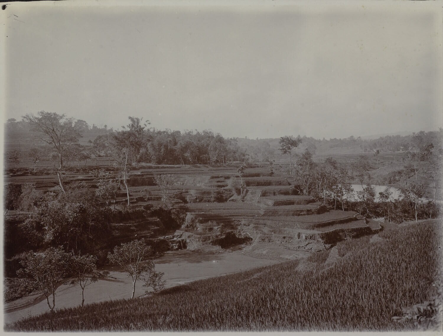 Landschap met sawa's en rivier, waarschijnlijk op Java